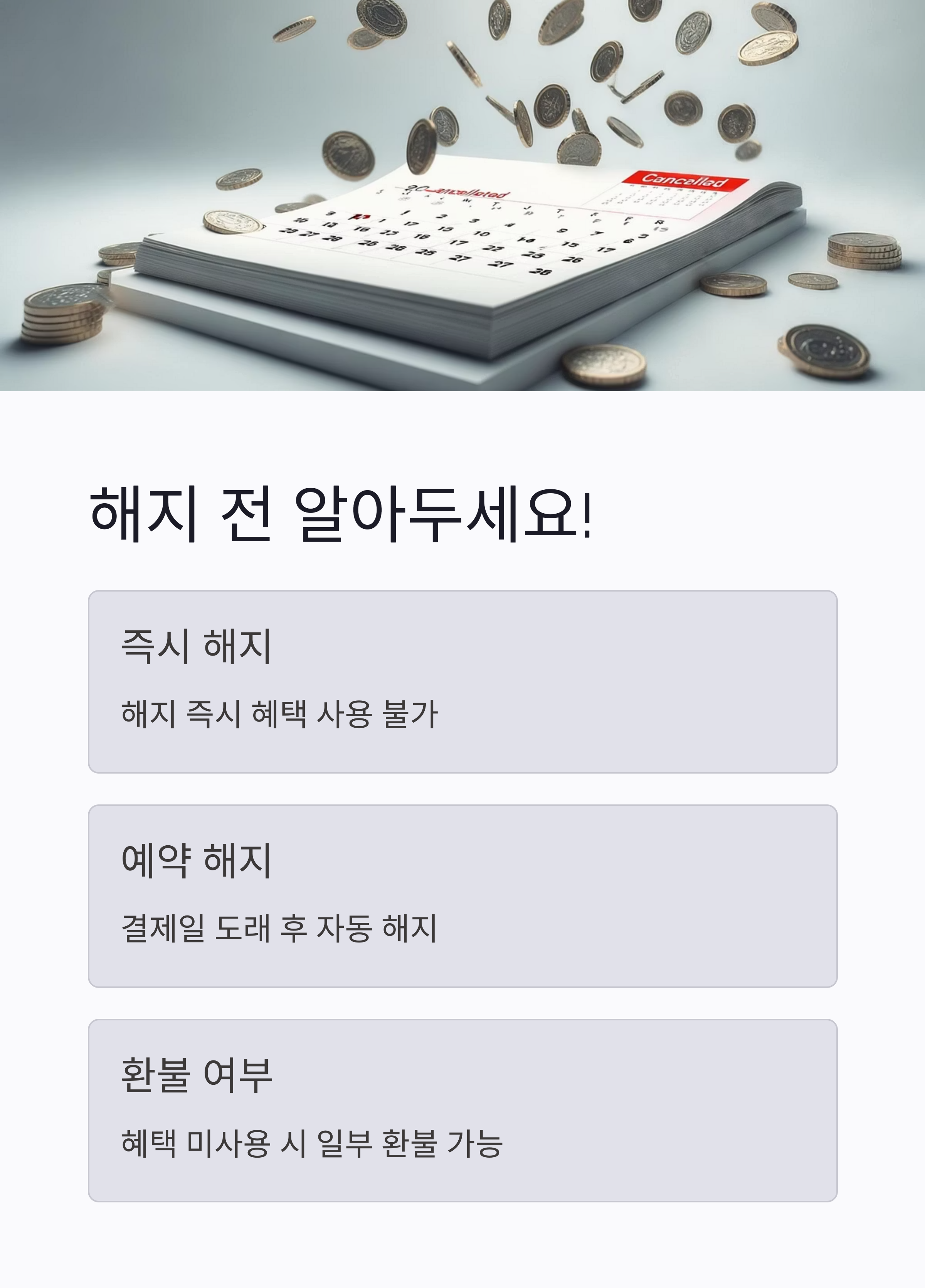 - ✔ 해지 후에도 결제일 전까지 혜택 사용 가능