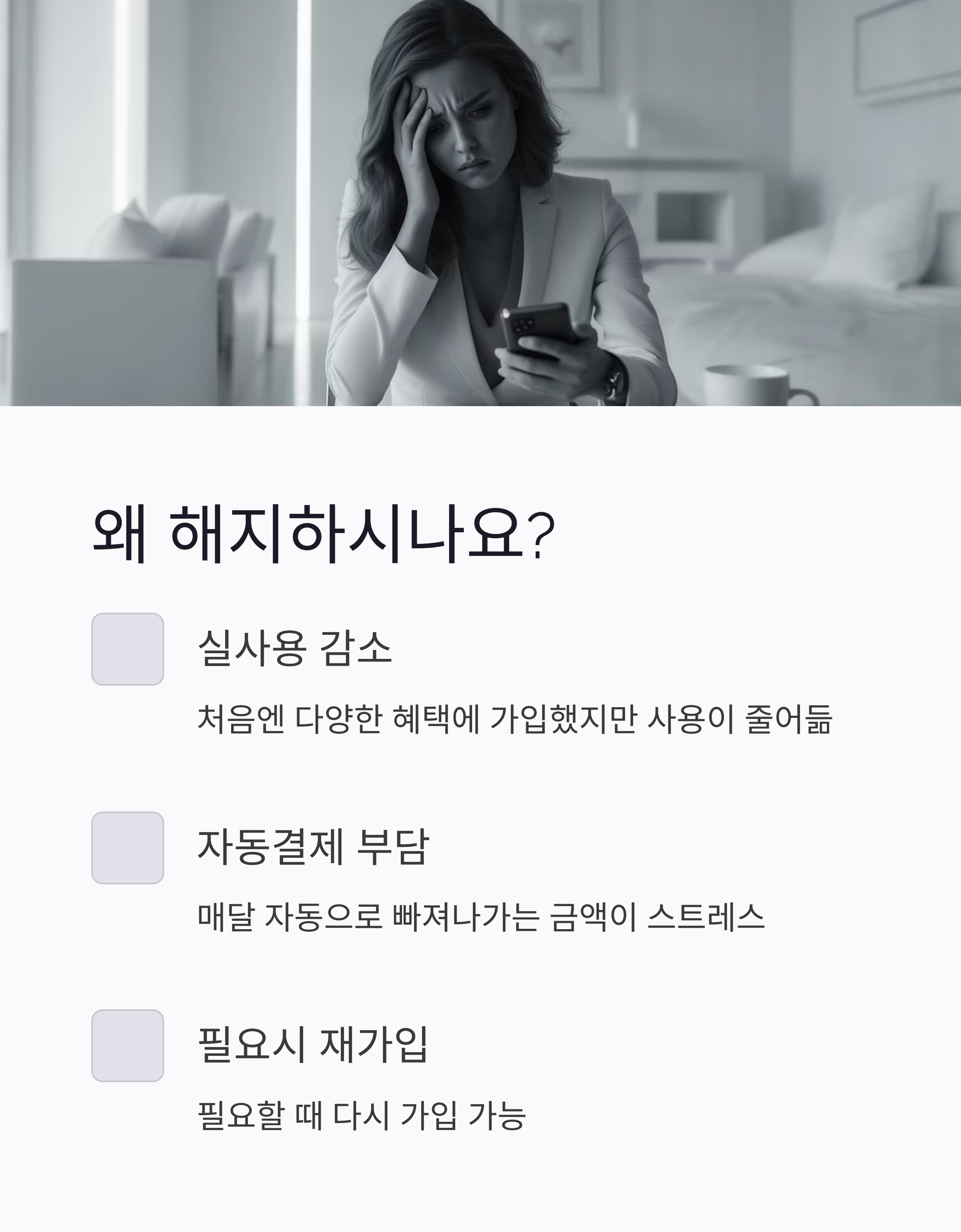 이번 기회에 깔끔하게 해지하고, 돈 아껴서 다른 데 쓰는 걸 추천드려요😉