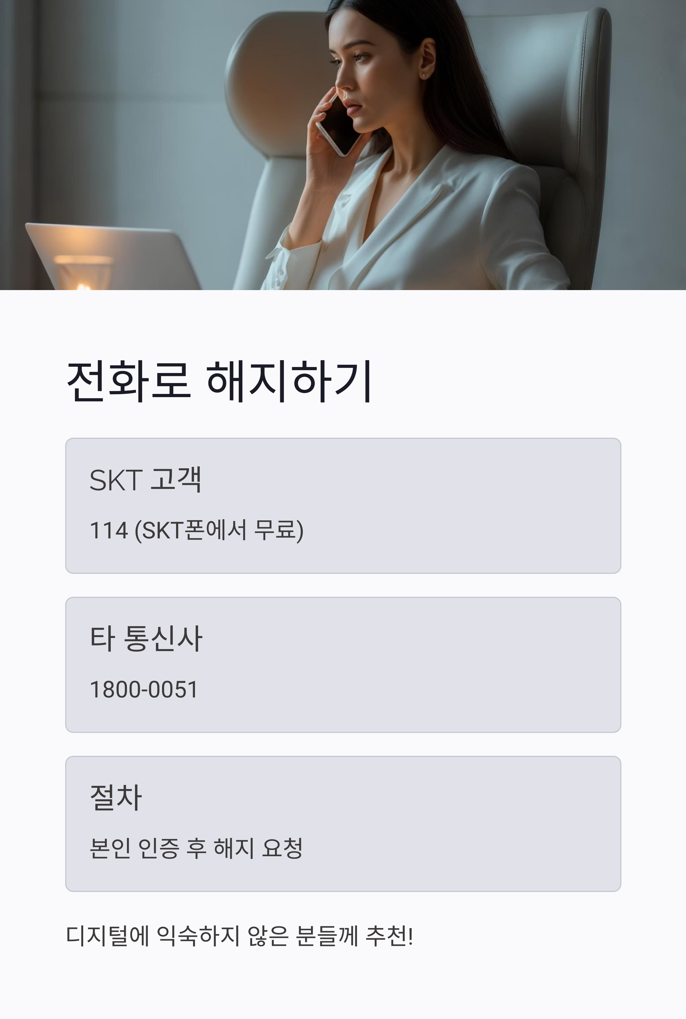 앱도 웹도 어렵다면, 그냥 전화 한 통으로 해지 가능합니다.