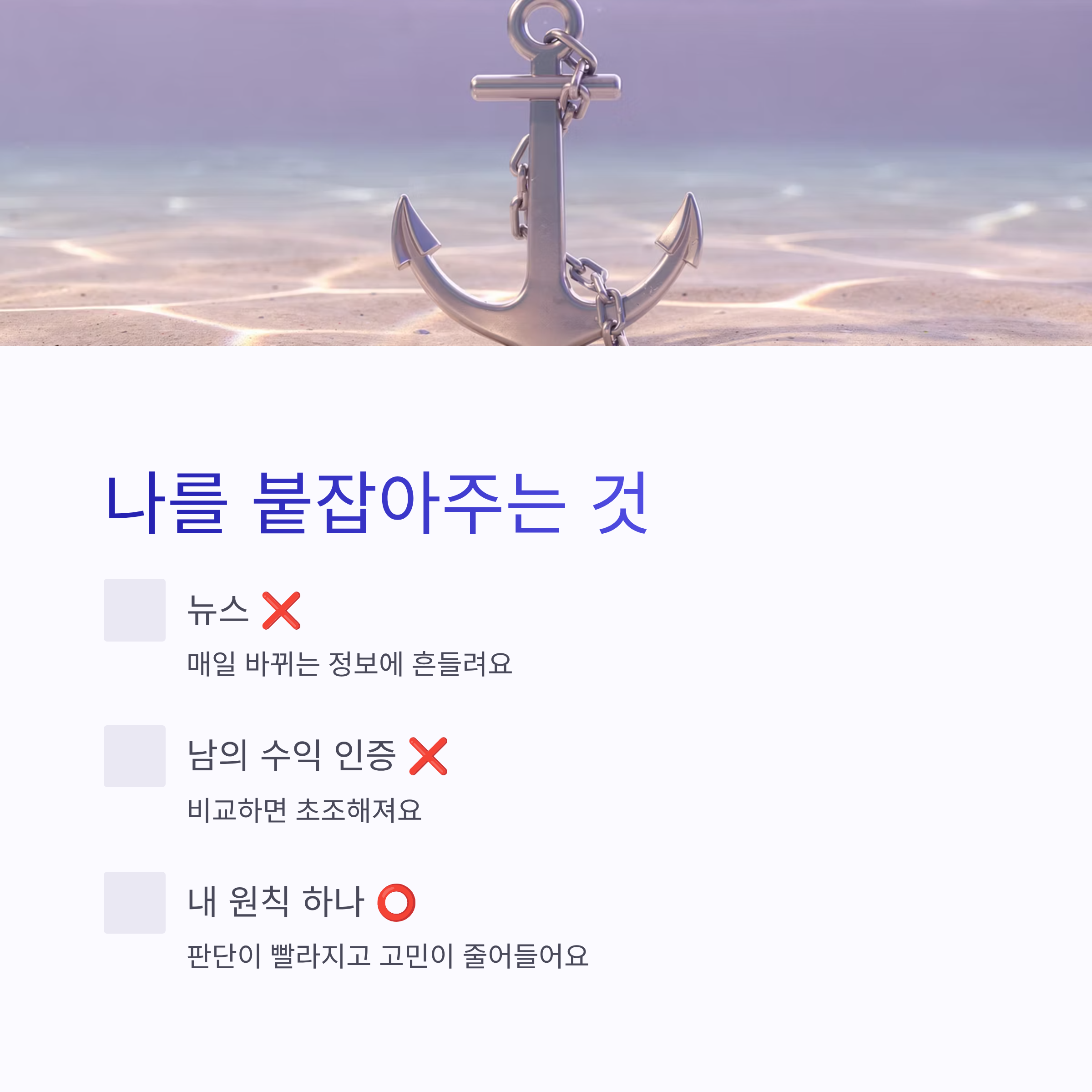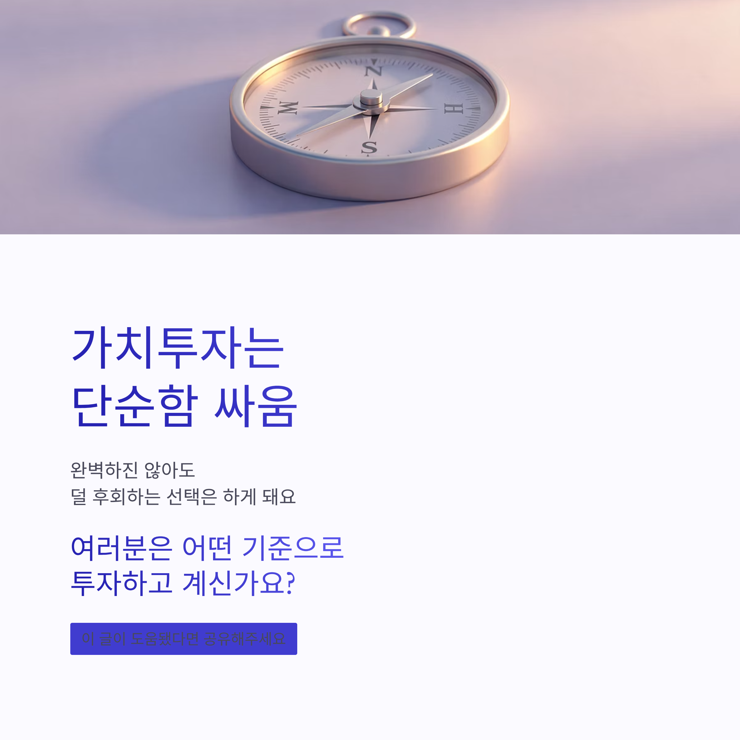 이때 나를 붙잡아주는 건 ❌ 뉴스 ❌ 남의 수익 인증 ⭕ 내가 정한 단 하나의 가치투자 원칙