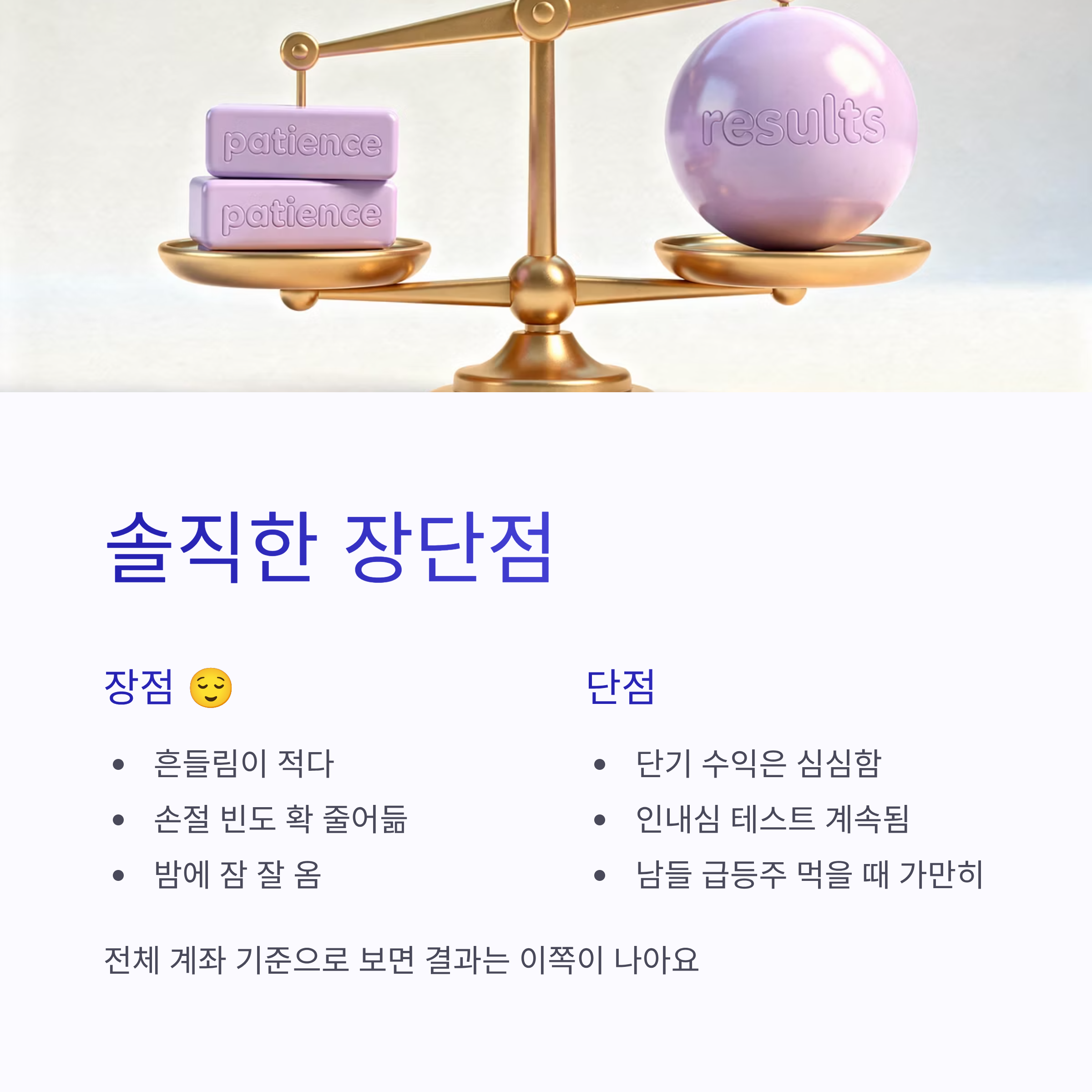 * 흔들림이 적다 * 손절 빈도 확 줄어듦 * 밤에 잠 잘 옴