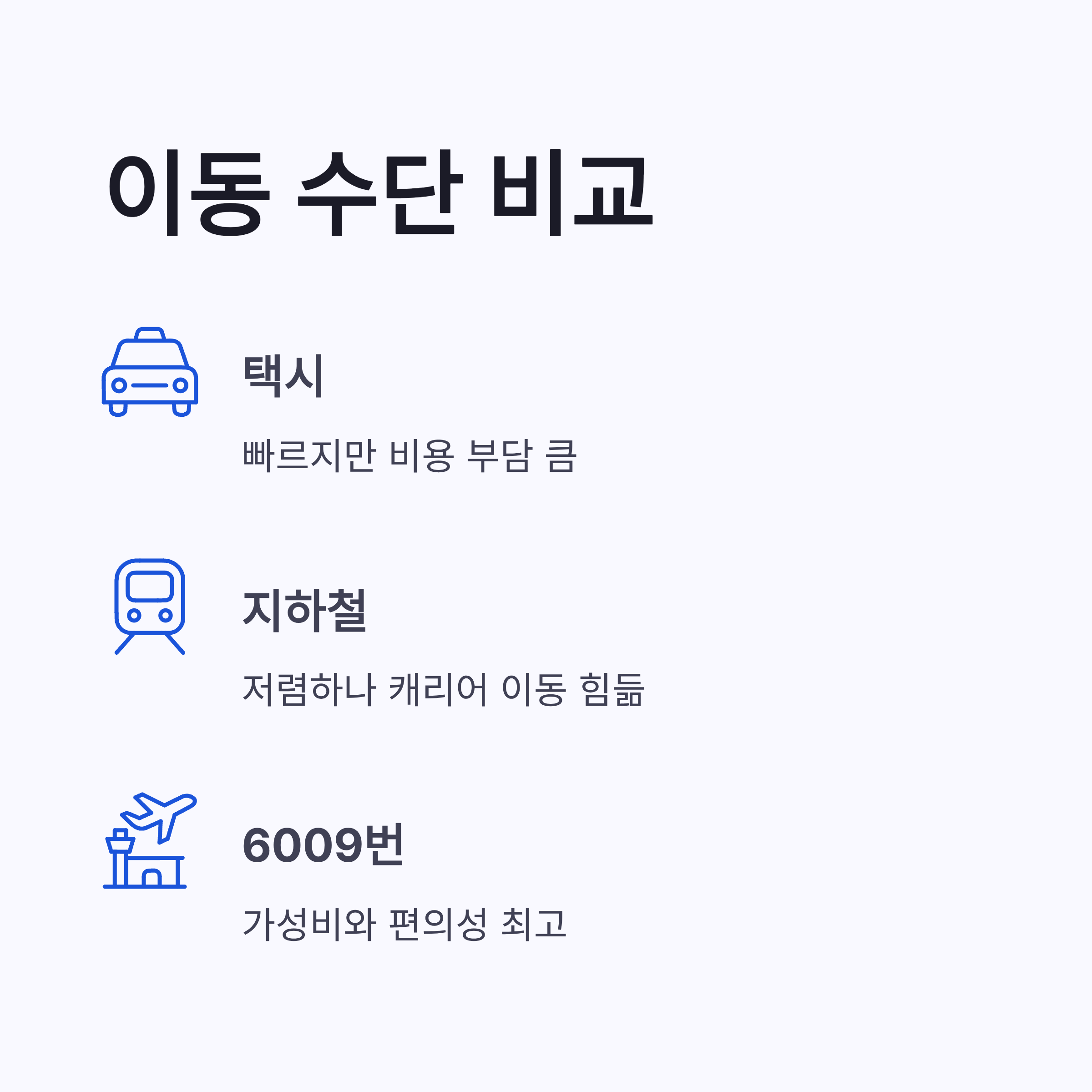 공항버스 6009번 시간표 기준 장단점 비교