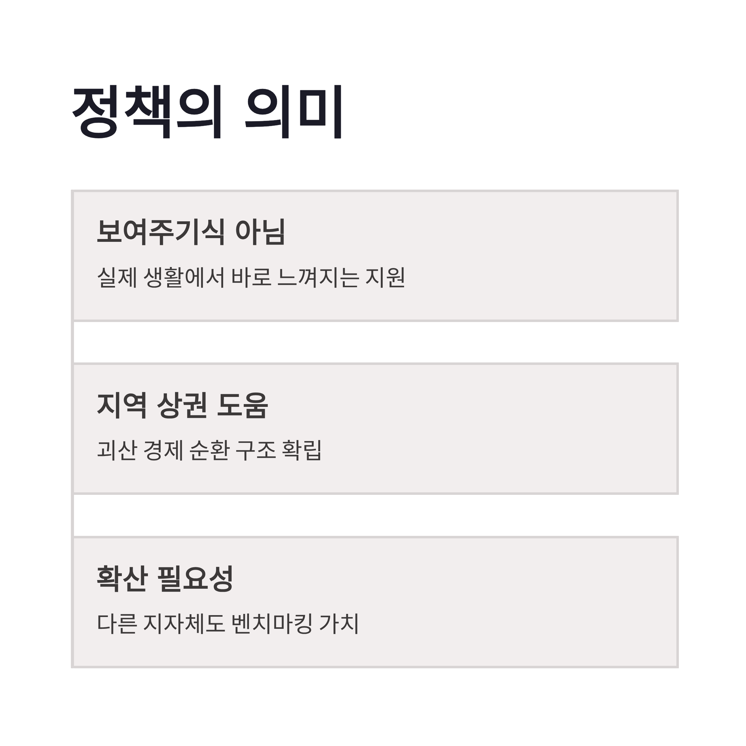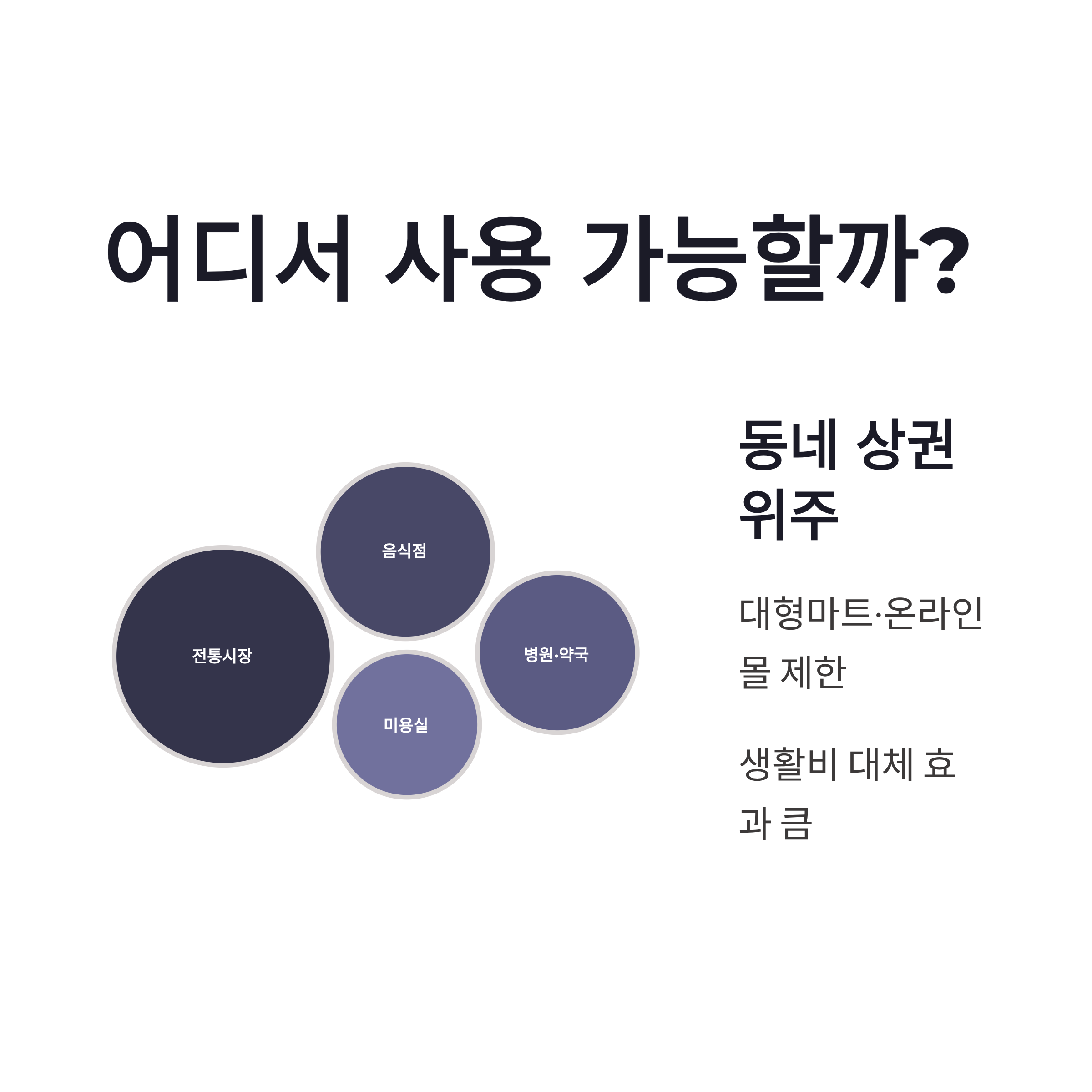 * 현금처럼 바로 체감됨 * 지역 소상공인 매출로 연결됨 * 단기 소비 진작 효과 확실