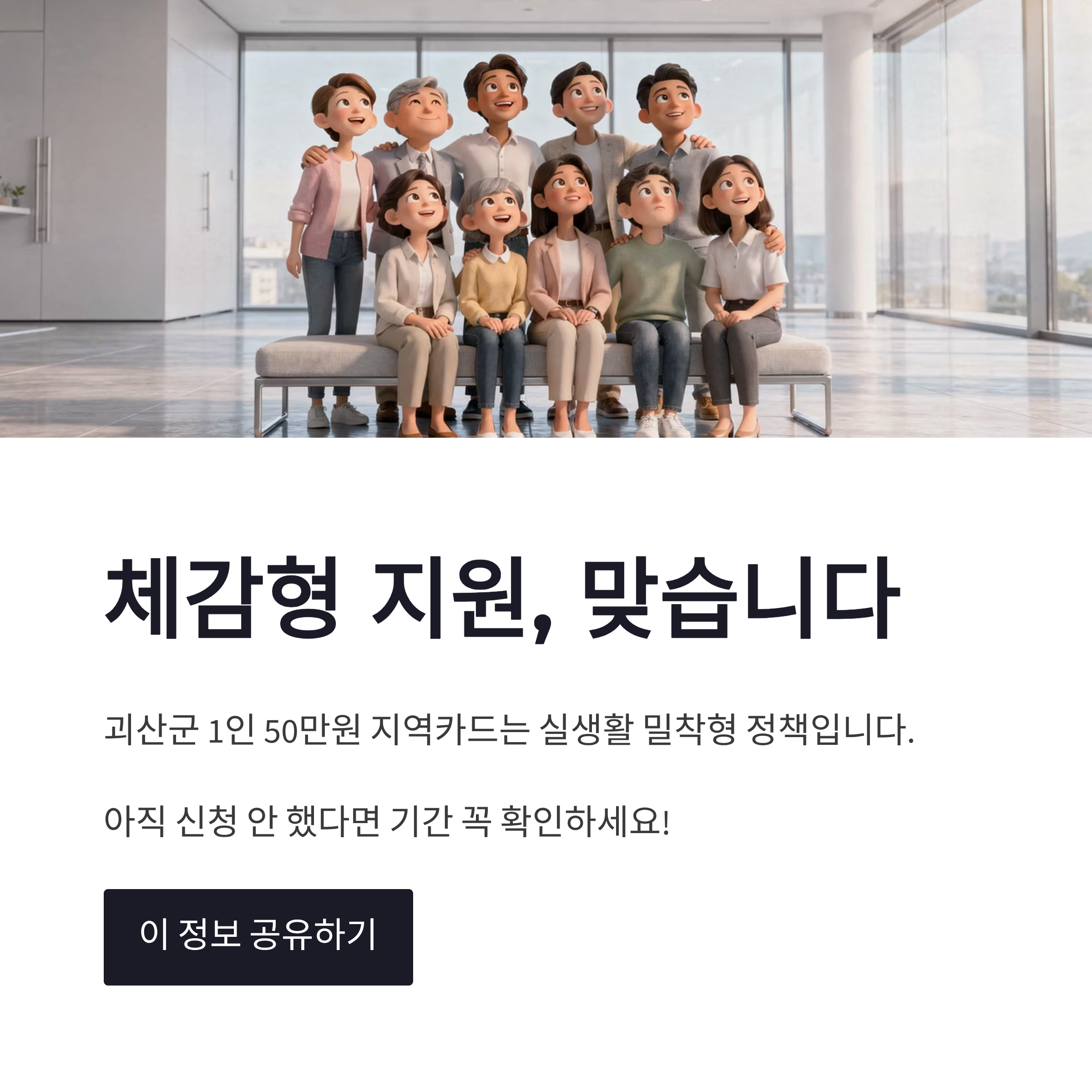 #괴산군 #괴산군민생지원금 #괴산군지역카드 #1인50만원지원금 #민생회복지원금 #지역화폐정책 #지자체지원금 #괴산지원금 #2026민생지원 #전군민지원금 #충북괴산 #생활비지원 #소상공인지원 #지역경제활성화 #정책지원