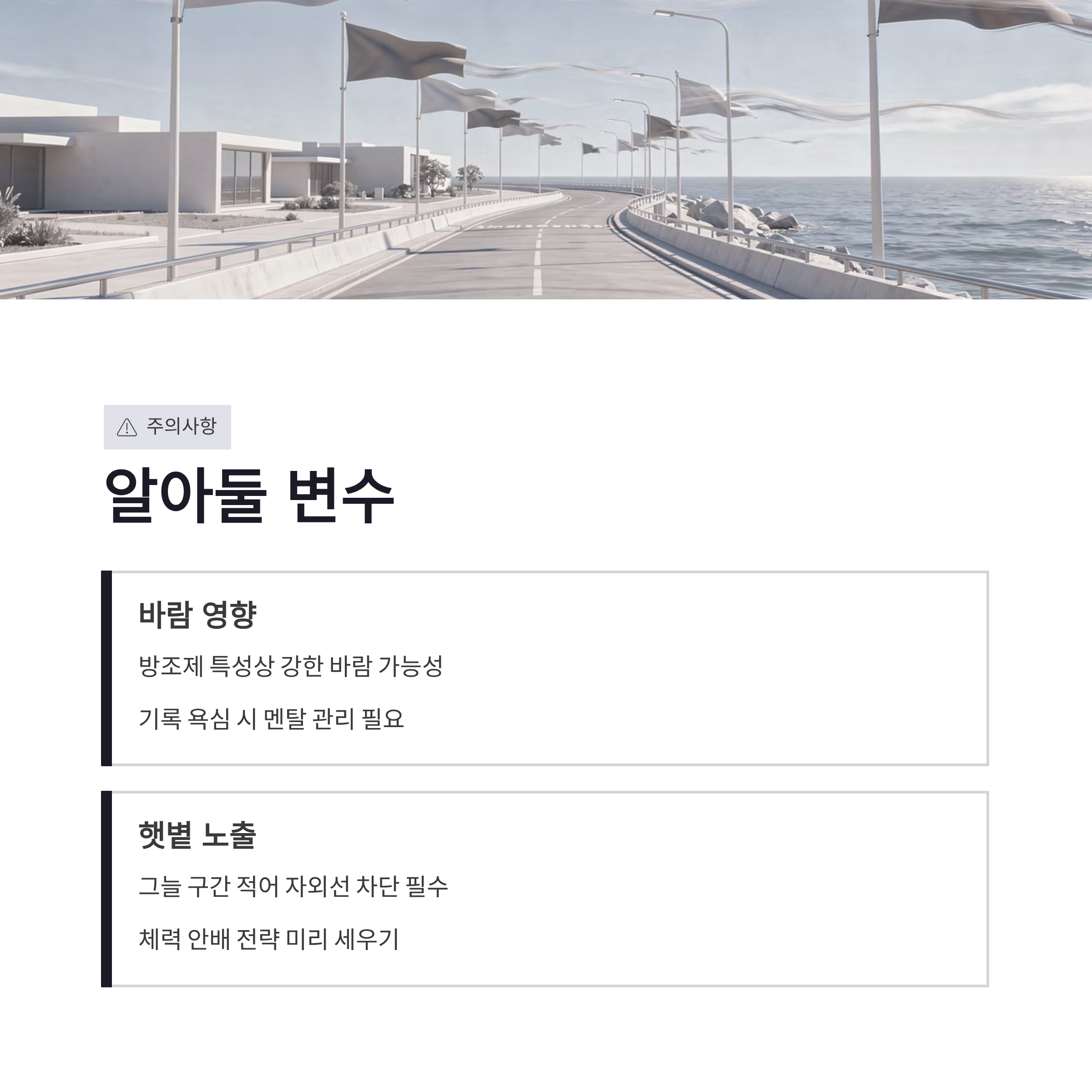 | 풀코스 | 42.195km | 방조제 왕복, 바람 변수 | 중 |