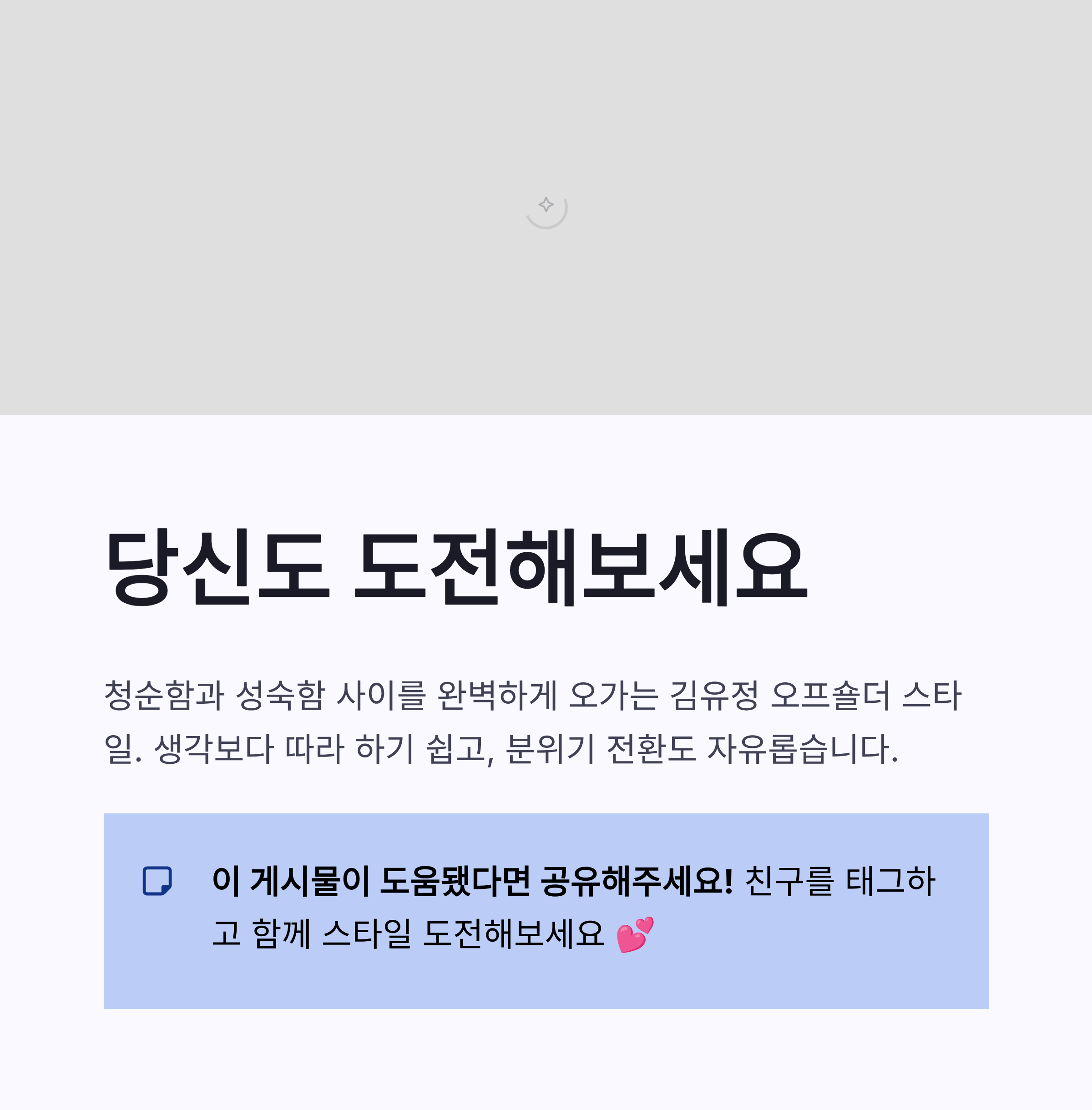 | 이 조합 덕분에 김유정 오프숄더가 “따라 해볼 수 있겠다”는 인식을 줬던 것 같아요. 실제로 SNS에서 비슷한 코디 인증도 엄청 늘었구요. 저도 보면서 “이건 진짜 실패 없는 공식이네…” 싶었습니다. |