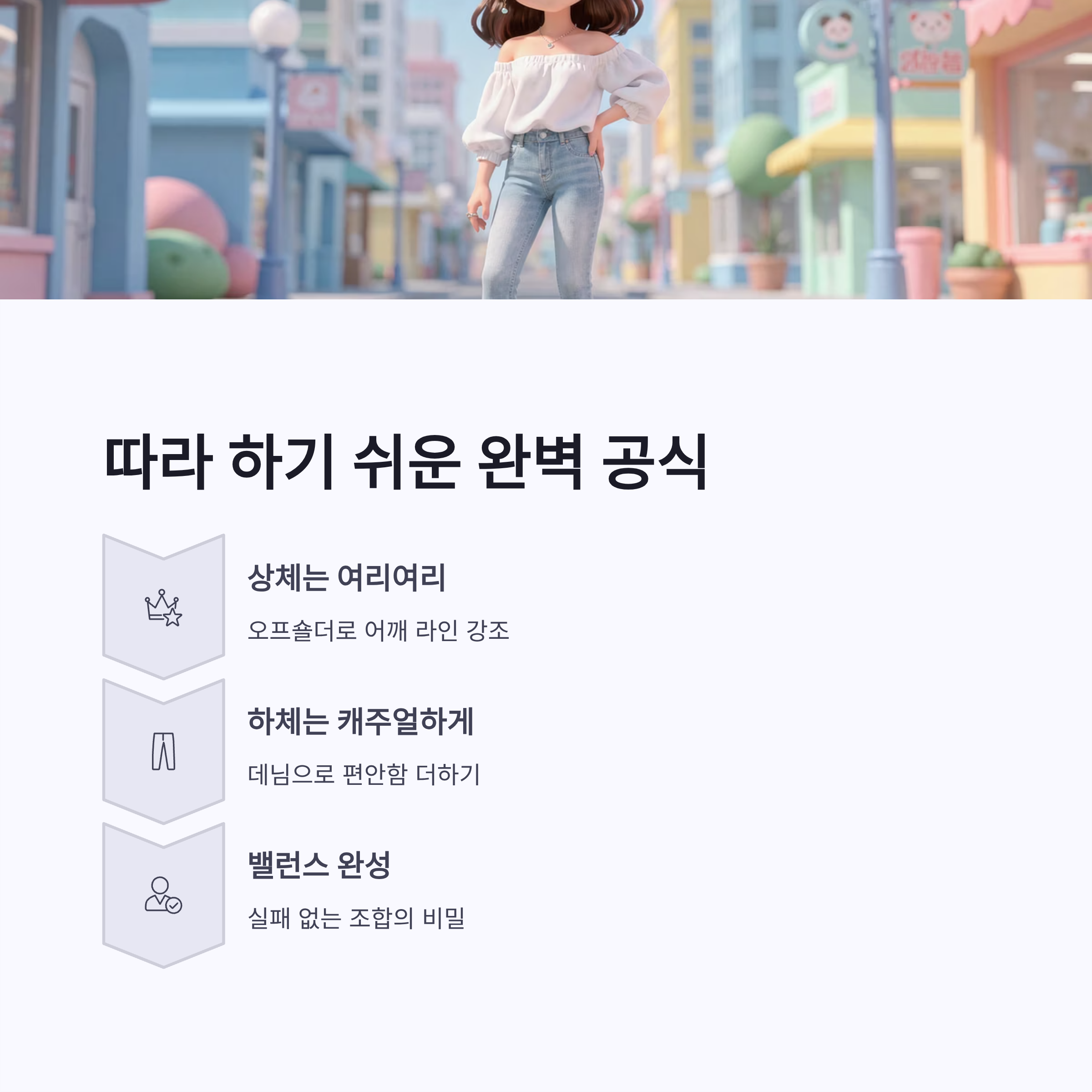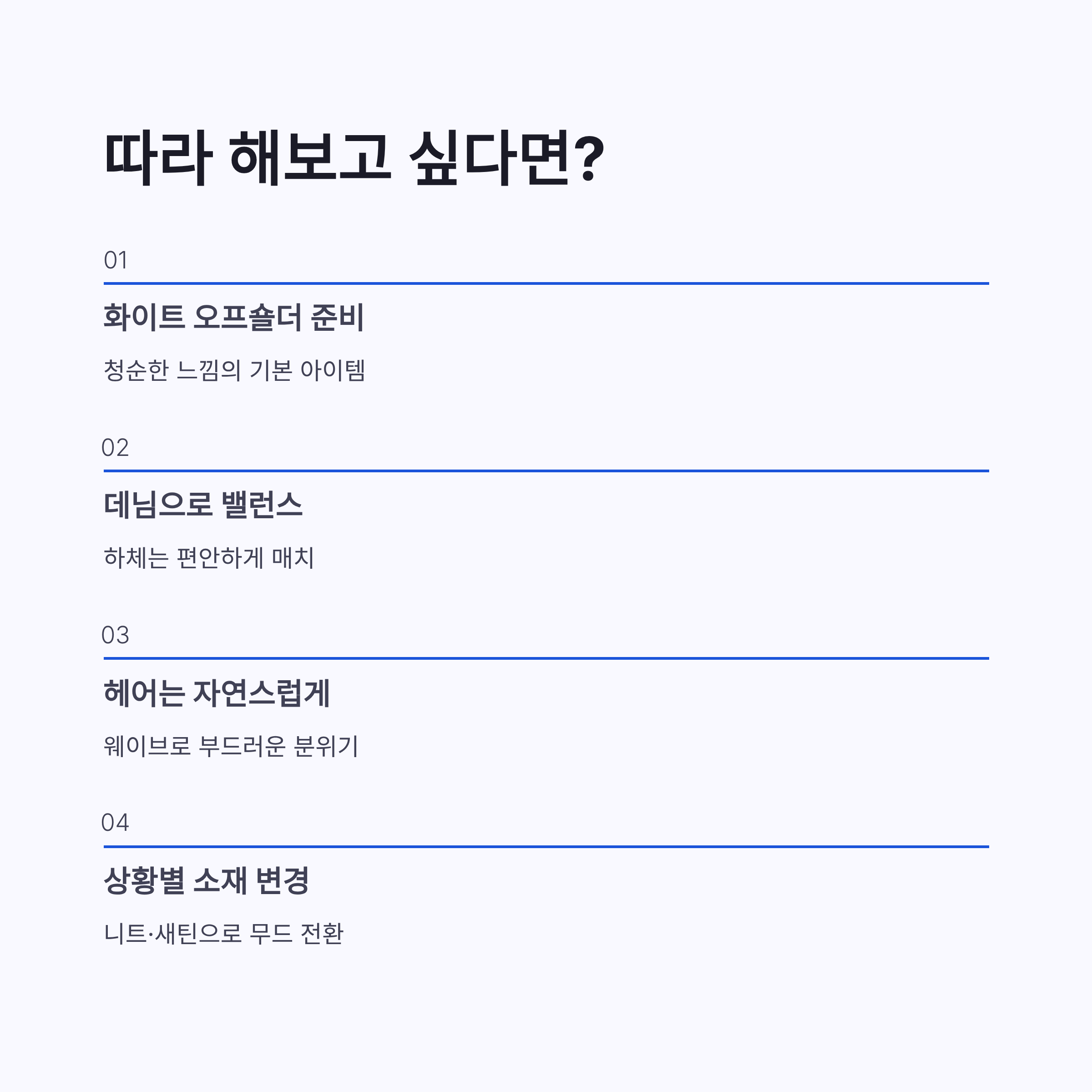 | 하의 | 데님 팬츠 | 꾸안꾸, 편안함 |