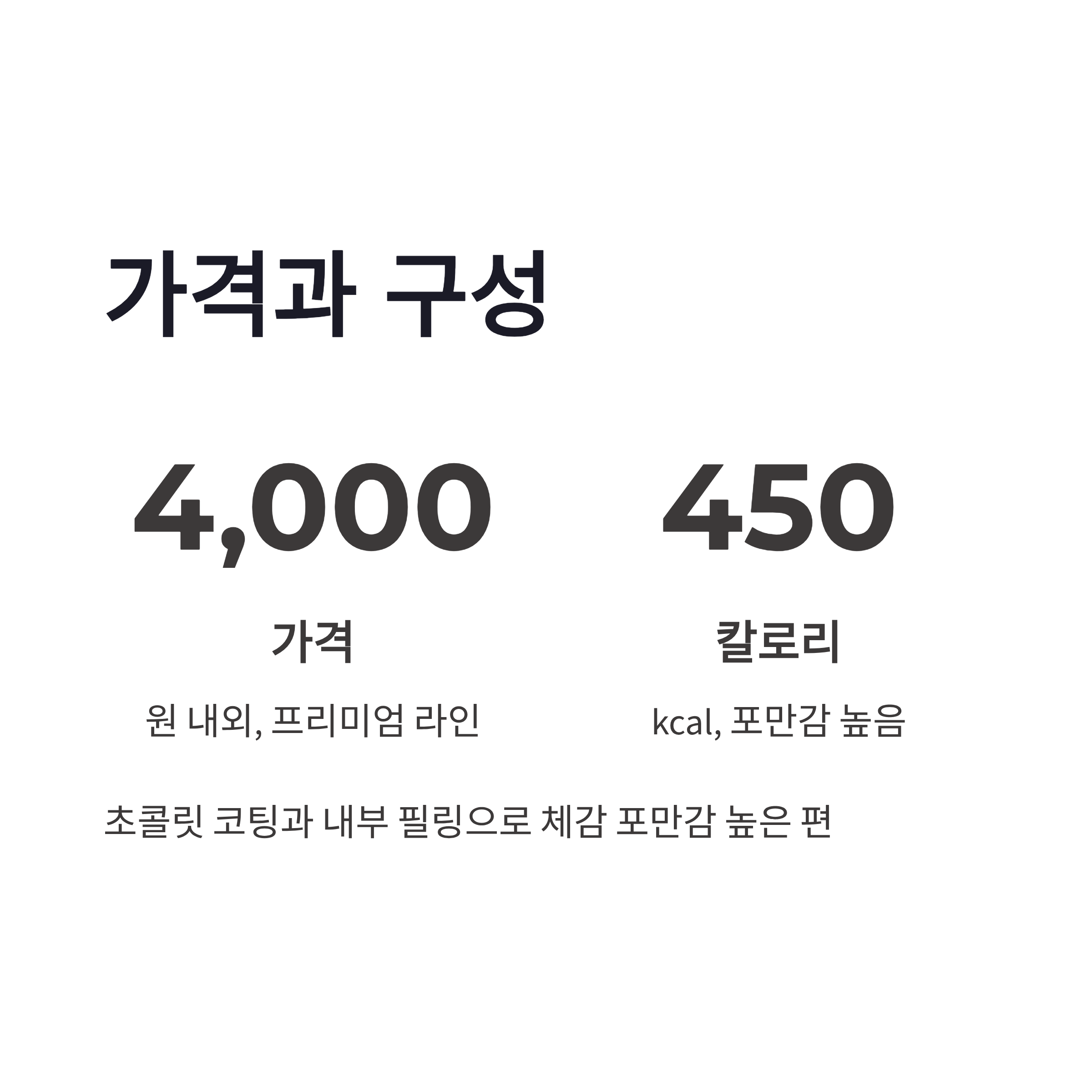 | 특징 | 진한 초콜릿 코팅 + 필링 |