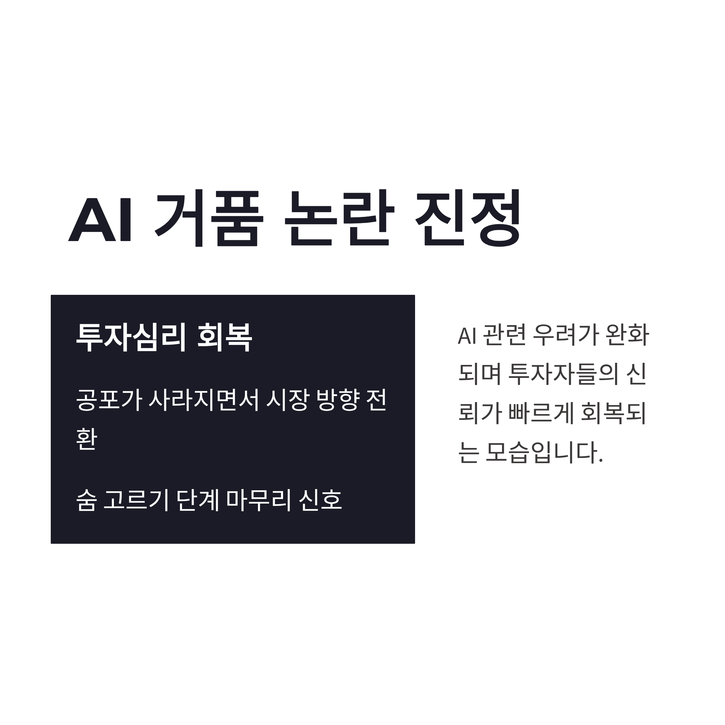 며칠 전까지만 해도 증시는 진짜 정신없었구요. 매도 사이드카, 매수 사이드카가 번갈아 나오는 장을 보면서 “이거 어디까지 흔들리는 거야…” 싶었습니다 ㅠㅠ 그런데 최근 들어 분위기가 살짝 달라졌습니다. 매도세 진정이 눈에 띄게 나타나고, 무엇보다 기관·외국인 대규모 순매수가 동시에 들어오면서 지수가 다시 5200선 재돌파에 성공했어요. 개인적으로는 이 구간에서 시장의 숨 고르기가 끝나가는 느낌을 받았습니다. 특히 AI 거품 논란이 조금씩 잦아들면서 투자심리가 회복되는 모습이었는데요, 공포가 사라지면 시장은 생각보다 빠르게 방향을 바꾸더라구요. 저도 이 며칠간은 괜히 계좌 열어보는 횟수가 늘었습니다…ㅎㅎ