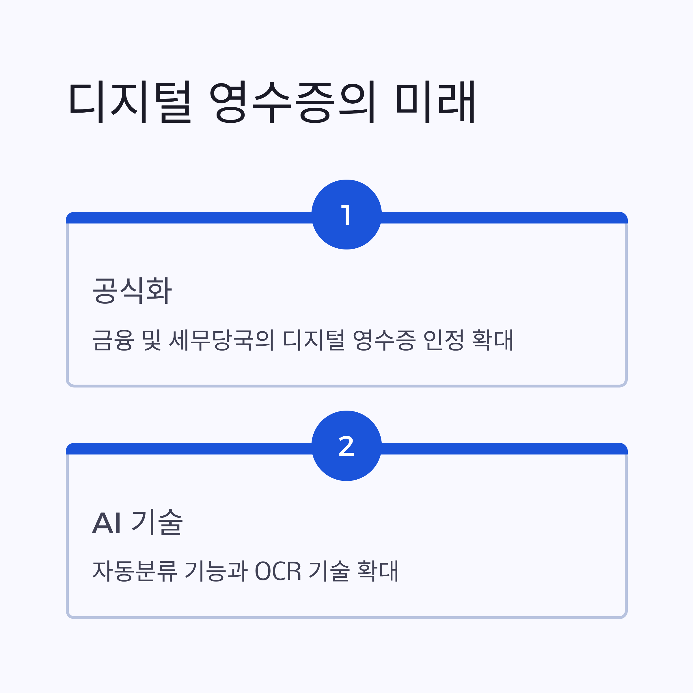 미래에는 금융 및 세무당국이 디지털 영수증을 더욱 공식화할 전망입니다. 또한, 네이버페이의 AI 기반 자동분류 기능과 OCR(문자인식) 기술이 확대되어 영수증 관리가 더욱 쉬워질 것입니다. Deloitte의 2024 보고서에 따르면, 자동 회계처리 지원 기능이 본격화될 것으로 보입니다.