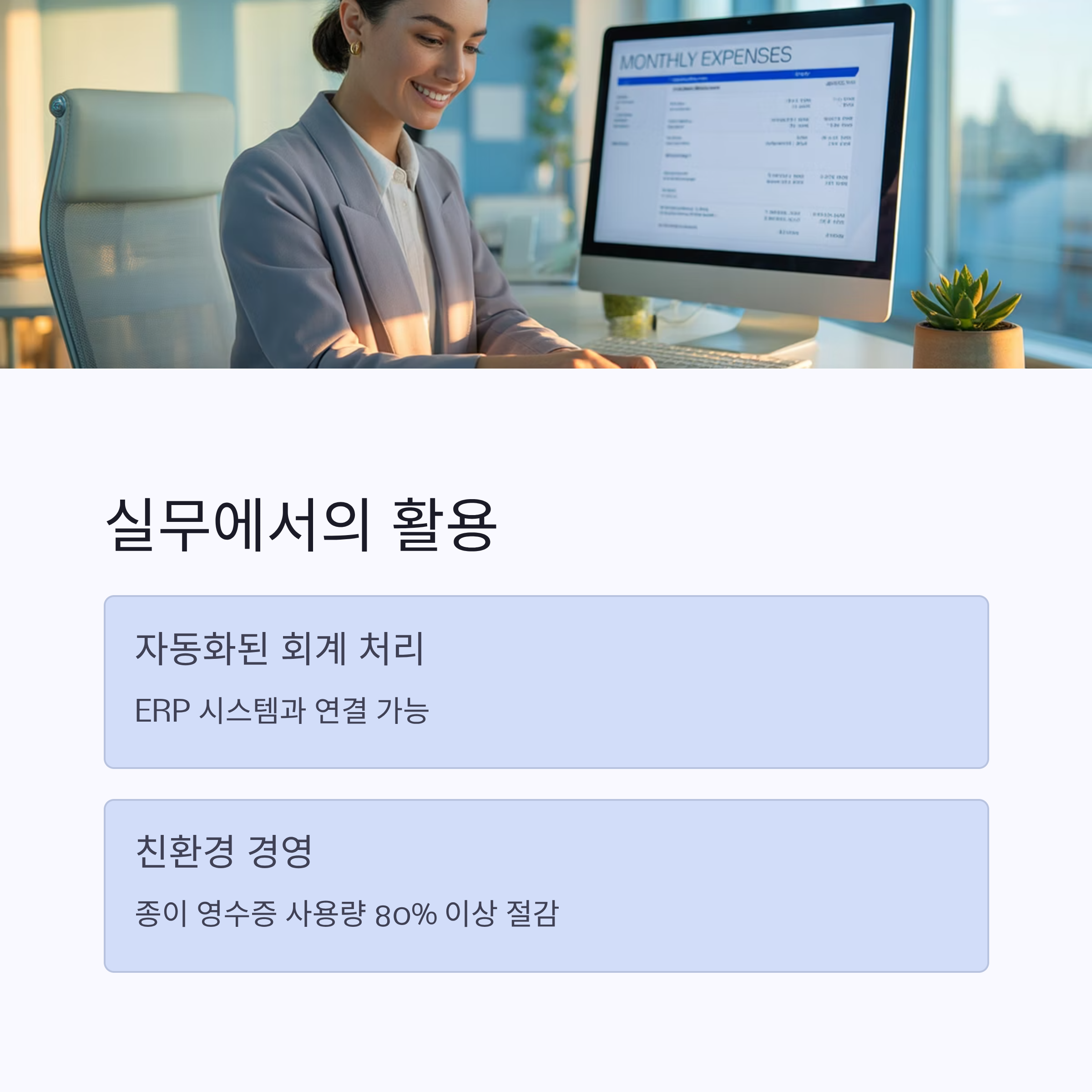 디지털 영수증의 활용은 기업 환경에서 중요합니다. PDF 파일로 저장된 영수증은 이메일 및 ERP 시스템으로 전송이 가능해 자동화된 회계 처리 시스템과 곧바로 연결됩니다. 이는 종이 영수증 사용량을 80% 이상 절감하는 친환경 경영 사례로도 주목받고 있습니다(한국환경공단, 2024).