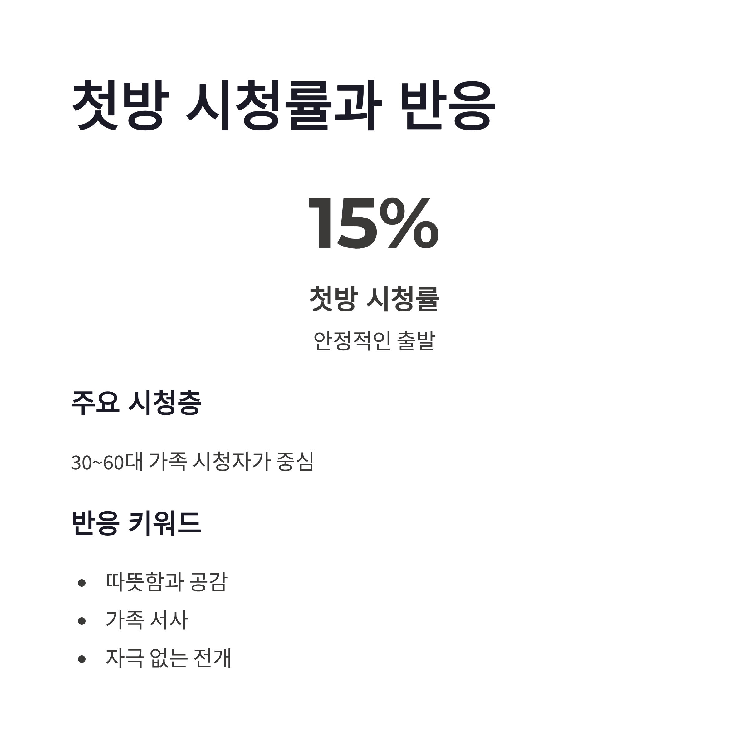 | 반응 키워드 | 따뜻함, 공감, 가족서사 |