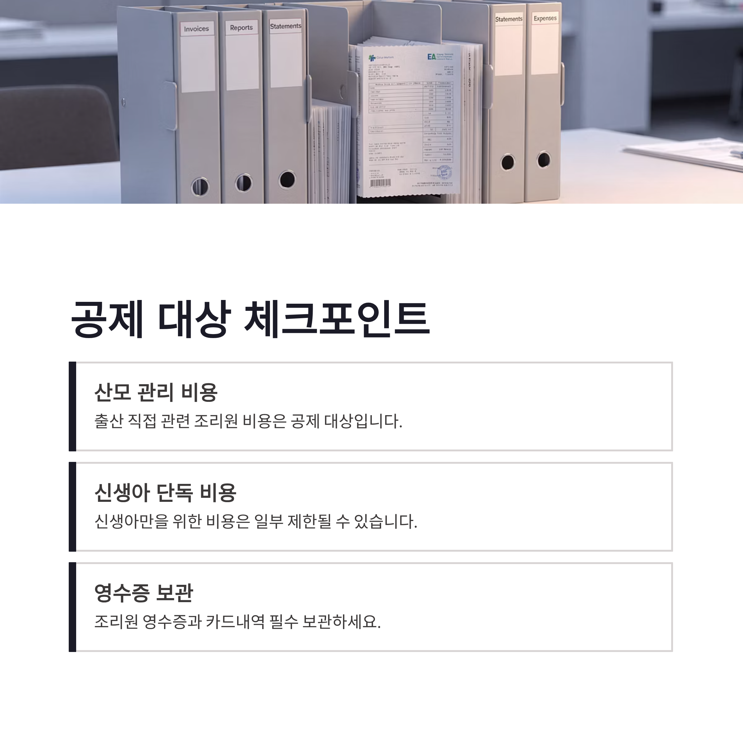 | 공제 대상 | 산모의 출산 관련 조리원 비용 | 신생아 단독 비용은 제한 |