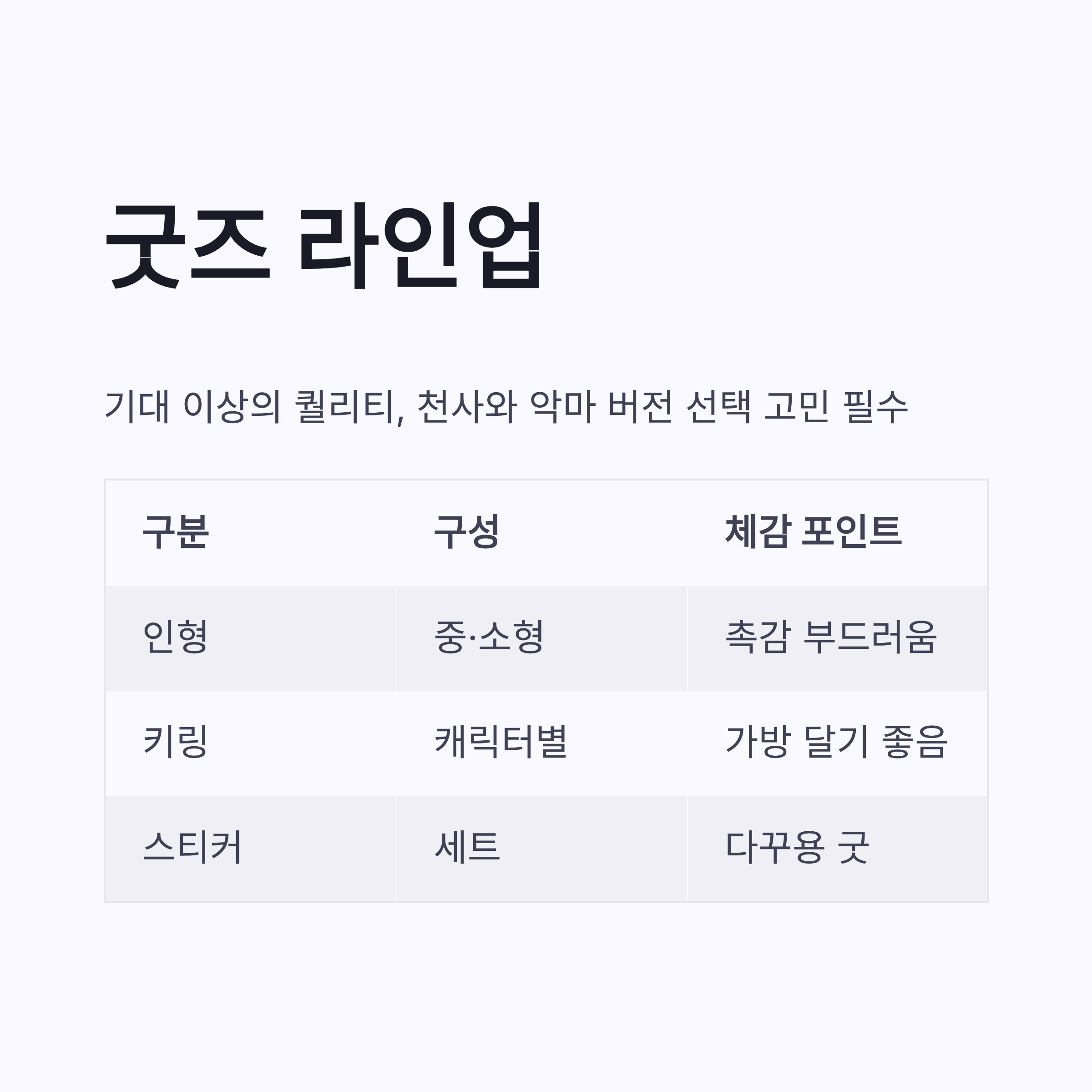 | 인형 | 중·소형 | 촉감 부드러움 |
