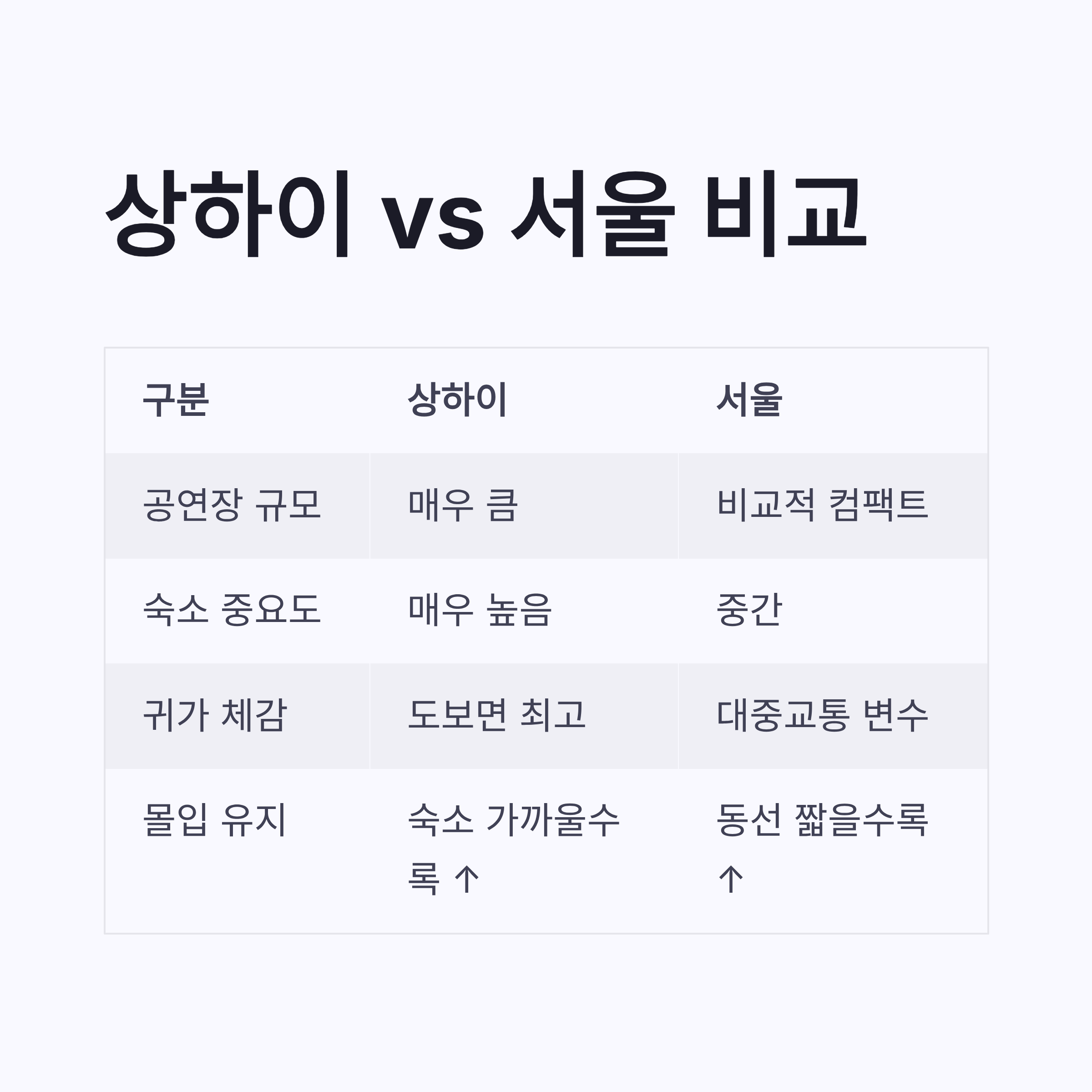 슬립노모어 숙소 선택, 상하이 서울 동선 차이가 체감됨