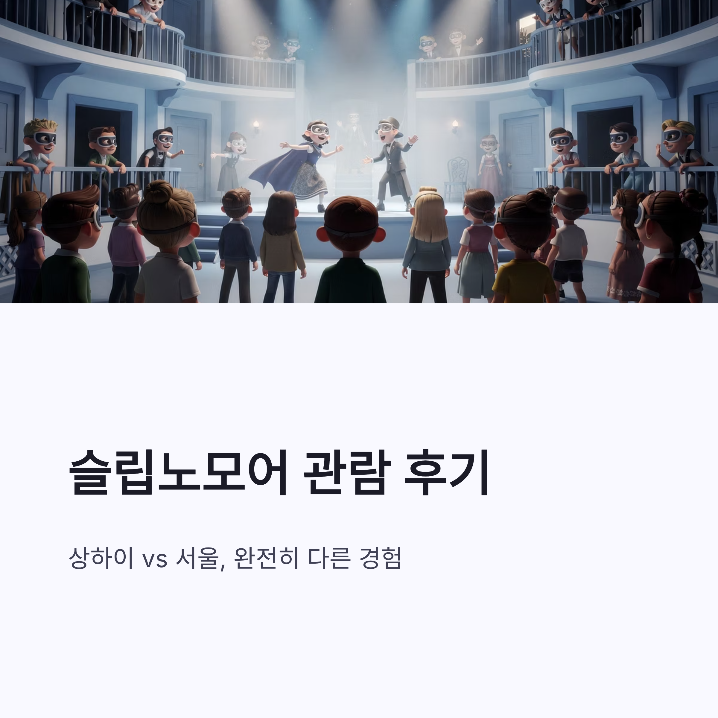 정리해보면 슬립노모어는 공연 자체도 대단하지만, 숙소와 동선, 관람 전략이 절반 이상을 차지해요. 상하이든 서울이든 준비만 잘하면 완전 다른 공연처럼 느껴집니다. 처음 보시는 분도, 재관람 고민 중인 분도 이번에는 조금 더 여유 있게 즐겨보시면 좋겠어요. 보고 나서 “아 이래서 사람들이 또 보는구나” 싶을지도요 ㅎㅎ 여러분은 슬립노모어, 어디서 보고 싶으신가요?