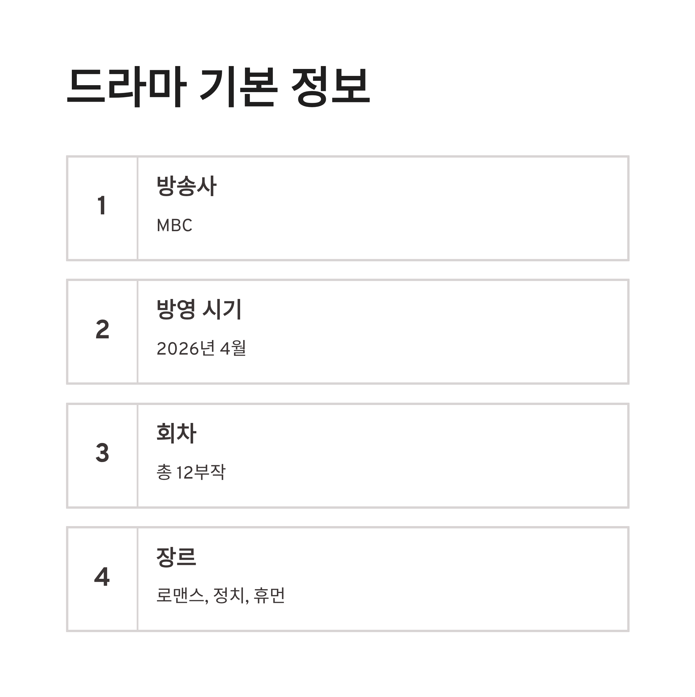 | 방영 시기 | 2026년 4월 |