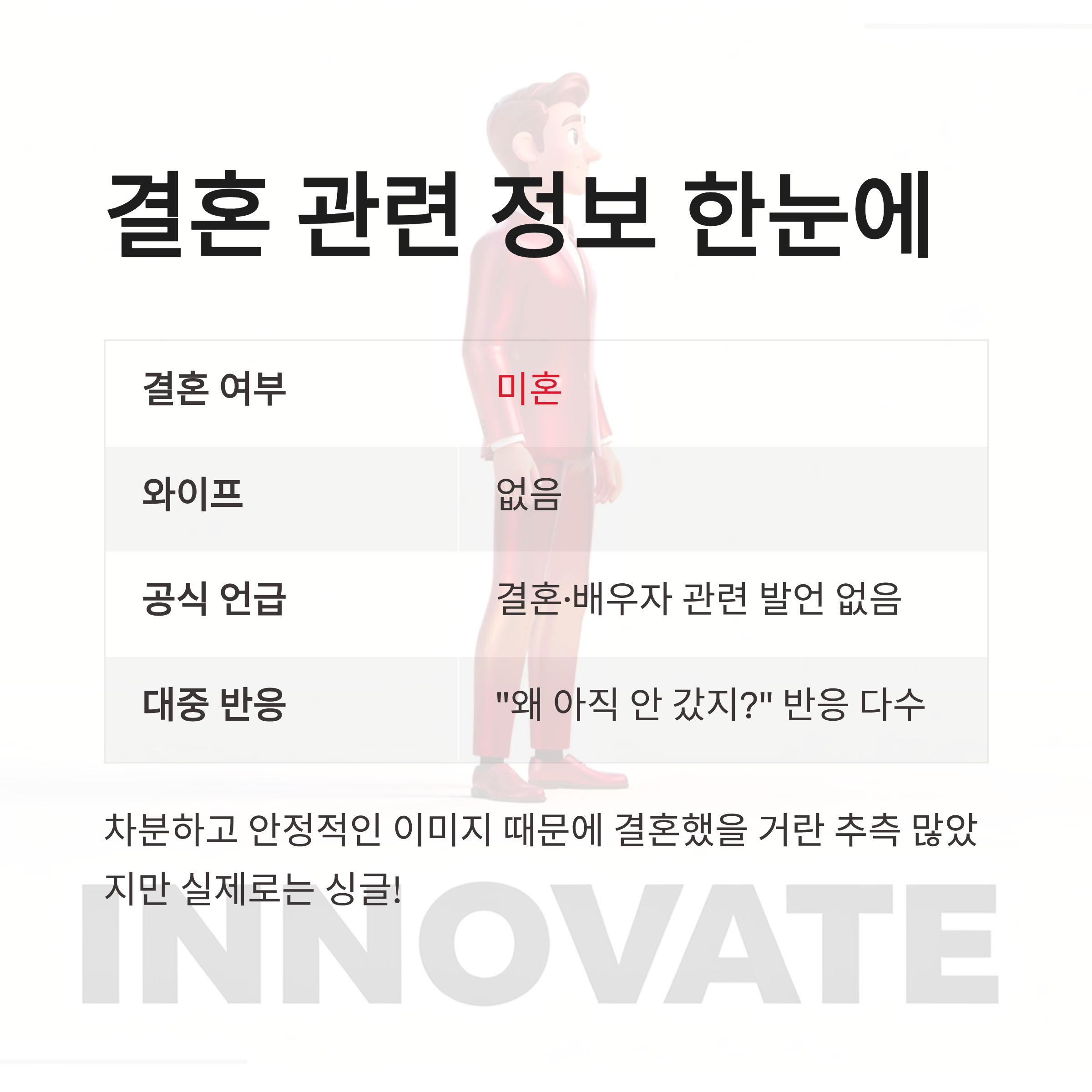 | 공식 언급 | 결혼·배우자 관련 발언 없음 |