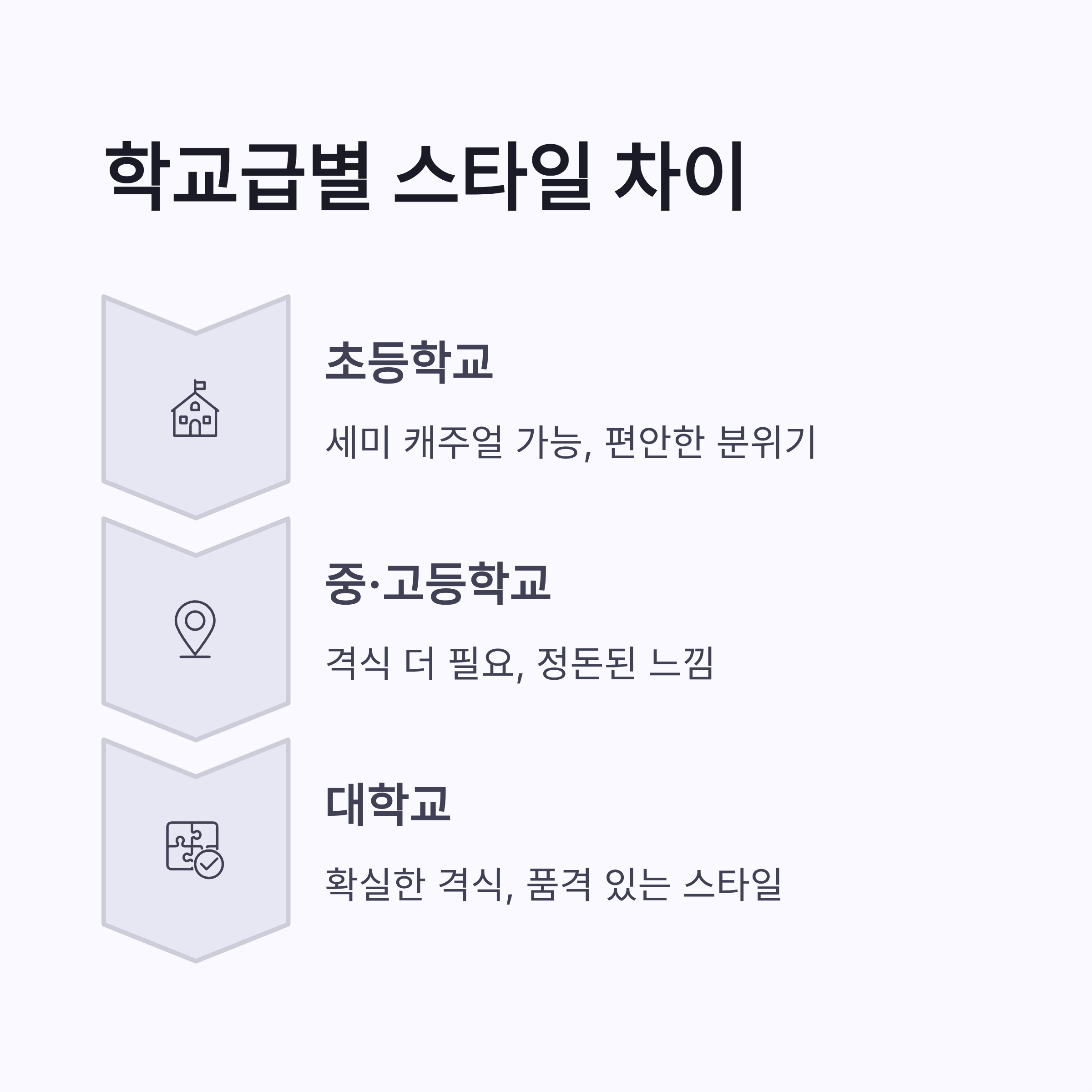 초등학교 졸업식은 분위기가 비교적 편안해서 세미 캐주얼도 가능해요. 반면 중·고등학교, 대학 졸업식은 확실히 격식이 더 느껴지더라구요. 학부모 졸업식 패션도 학교 급에 따라 톤 조절이 필요합니다. 요즘 트렌드는 과한 꾸밈보다는 ‘정돈된 자연스러움’이에요. 장점은 깔끔하고 사진 잘 나옴, 단점은 너무 신경 안 쓰면 평상복처럼 보일 수 있다는 점… 적당한 액세서리로 균형 잡아주는 게 좋았어요.