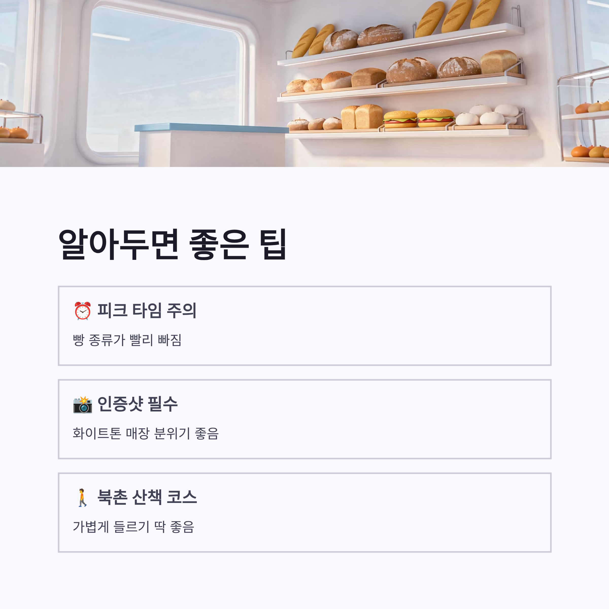 정리하자면 안국 ETF 베이커리는 “한 번쯤은 꼭 가볼 만한 곳”이에요. 990원 소금빵은 그냥 경험 자체가 재미있고, 딸기케이크까지 생각보다 안정적이라 만족감이 있었거든요. 북촌 산책하다가 가볍게 들르기 딱 좋은 코스랄까용. 다음엔 다른 빵도 더 먹어볼 생각입니다 ㅎㅎ 혹시 여러분은 소금빵파인가요, 케이크파인가요?
