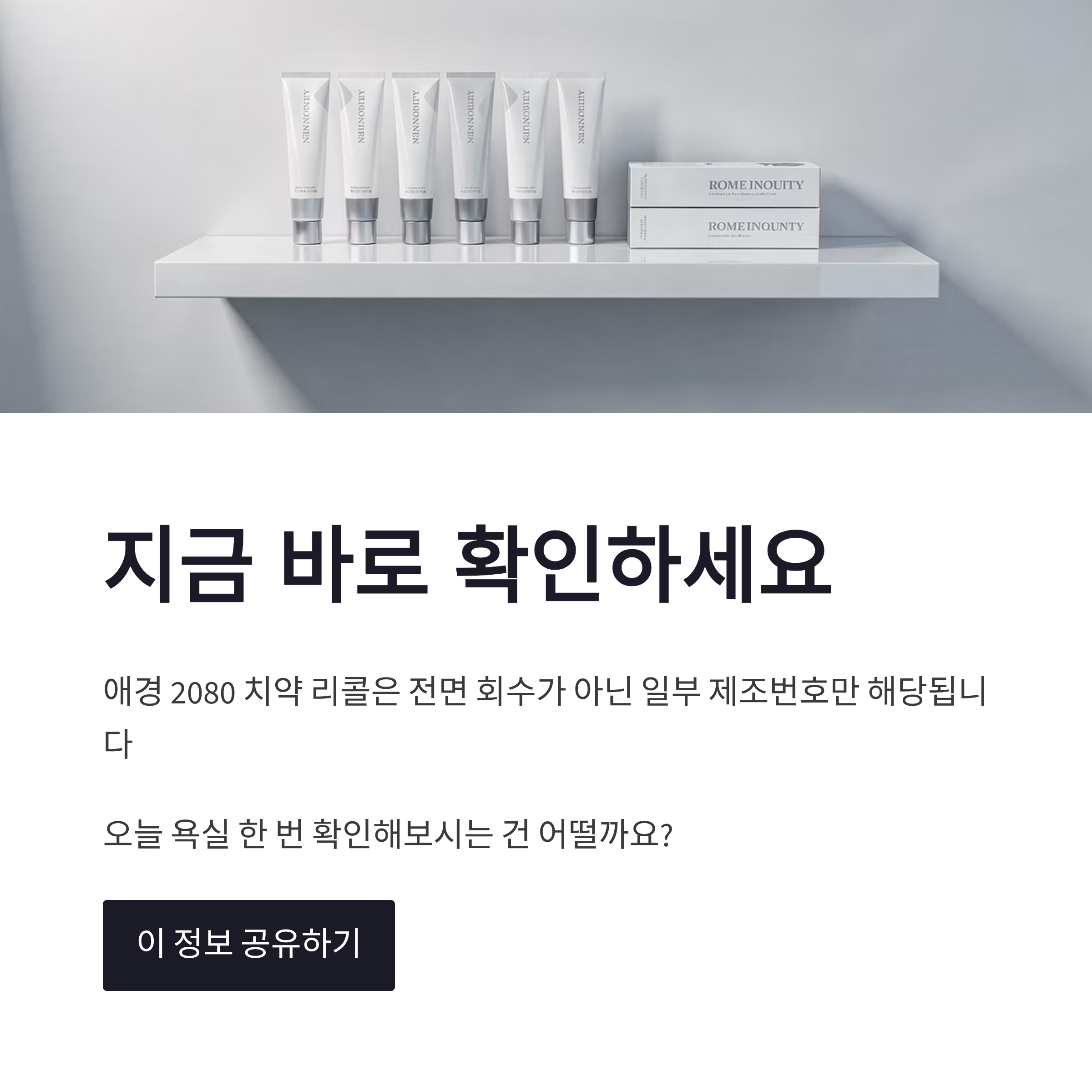 혹시 여러분 집에 있는 2080 치약은 어떠신가요? 확인 아직 안 해보셨다면… 오늘 욕실 한 번 슬쩍 보시는 거 추천드려요 ㅎㅎ