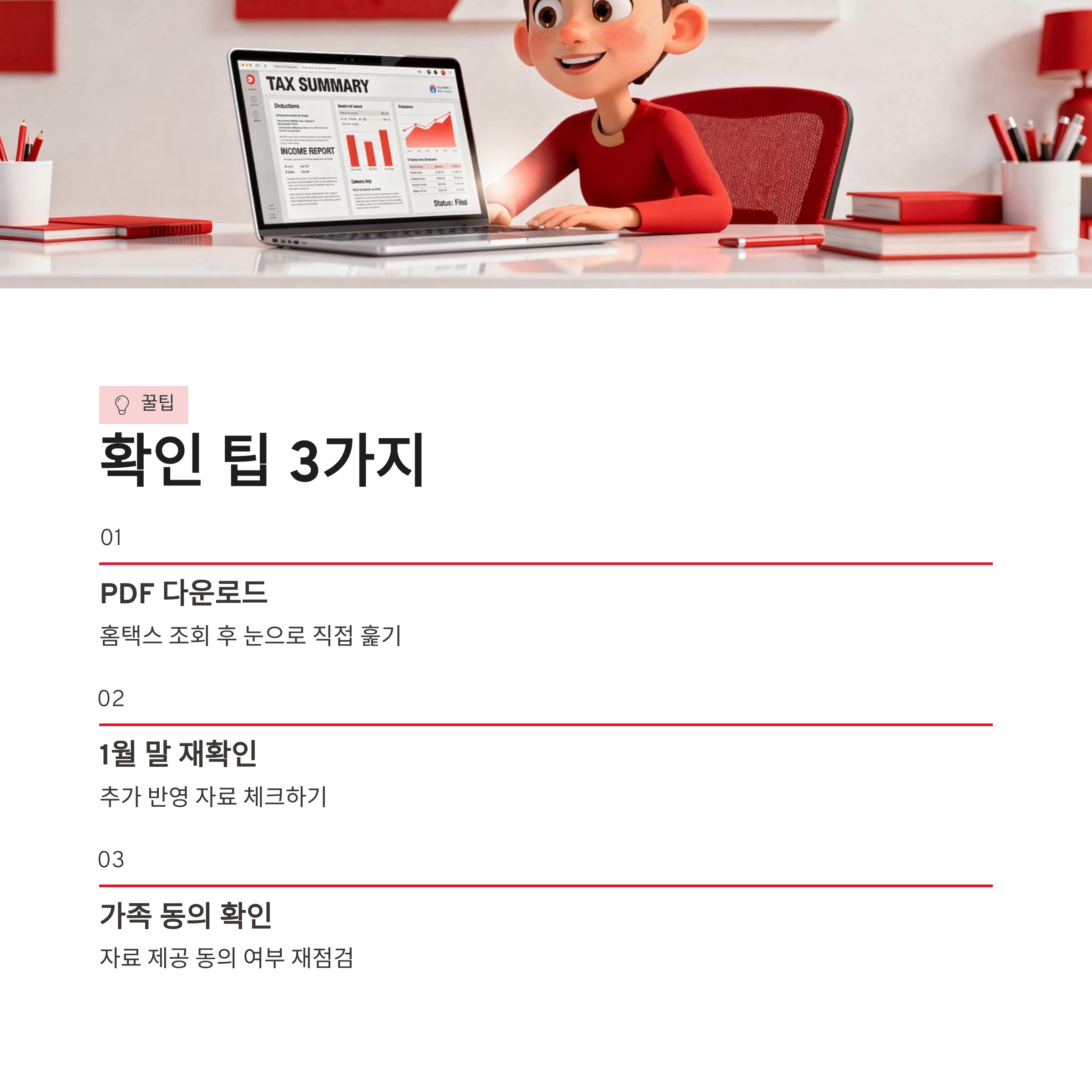 2026년 기준으로 가장 현실적인 연말정산 간소화 확인 팁은 딱 이 세 가지였어요. 첫째, 국세청 홈택스에서 조회 후 PDF 내려받아 눈으로 직접 훑기. 이거 은근 효과 큽니다. 둘째, 1월 말 이후 한 번 더 접속해서 추가 반영 여부 체크. 늦게 올라오는 자료가 생각보다 많아요. 셋째, 가족자료 제공 동의 여부 재확인. 이거 하나 빠져서 공제 통째로 날리는 경우 진짜 많더라구요.