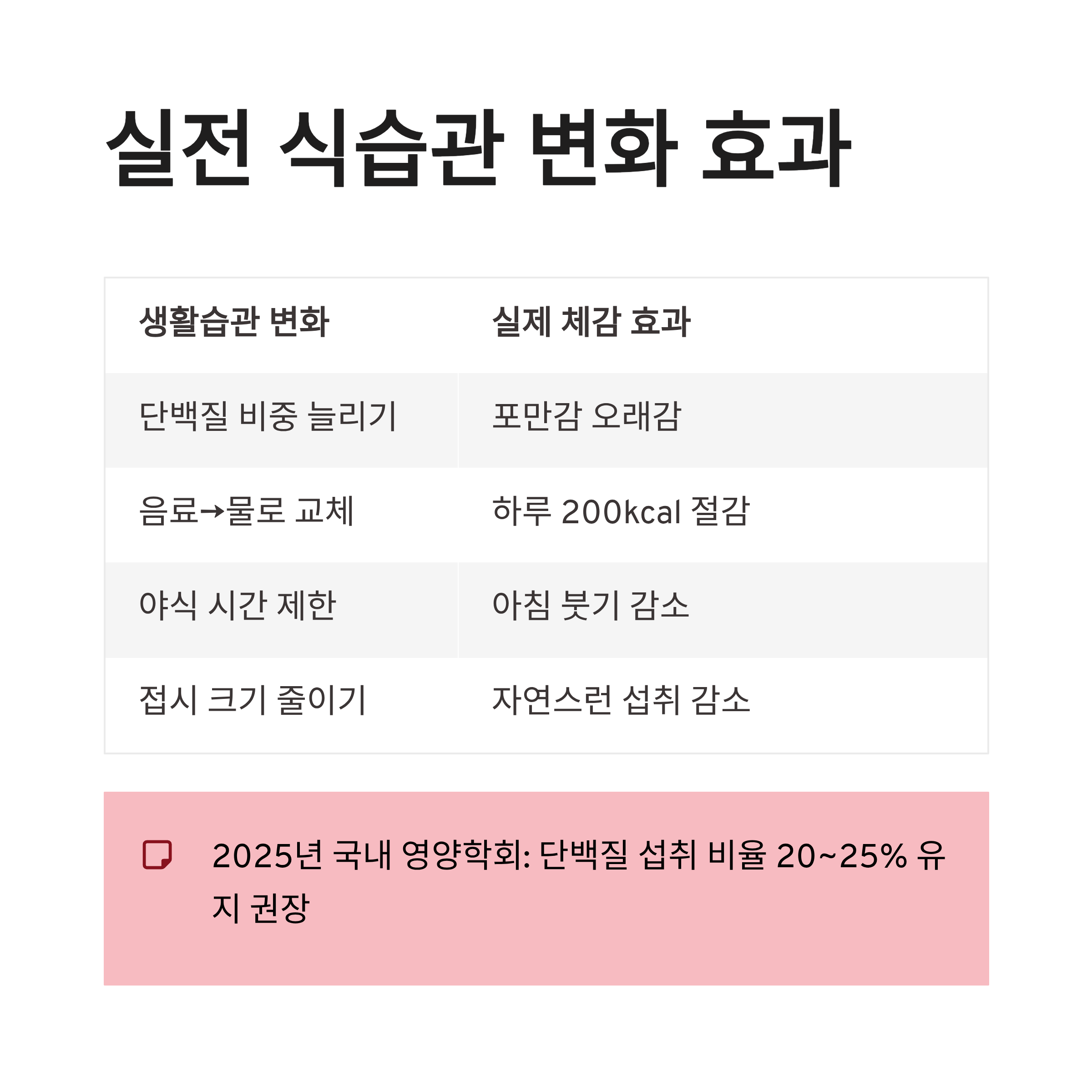 | 음료→물로 교체 | 하루 200kcal 절감 |