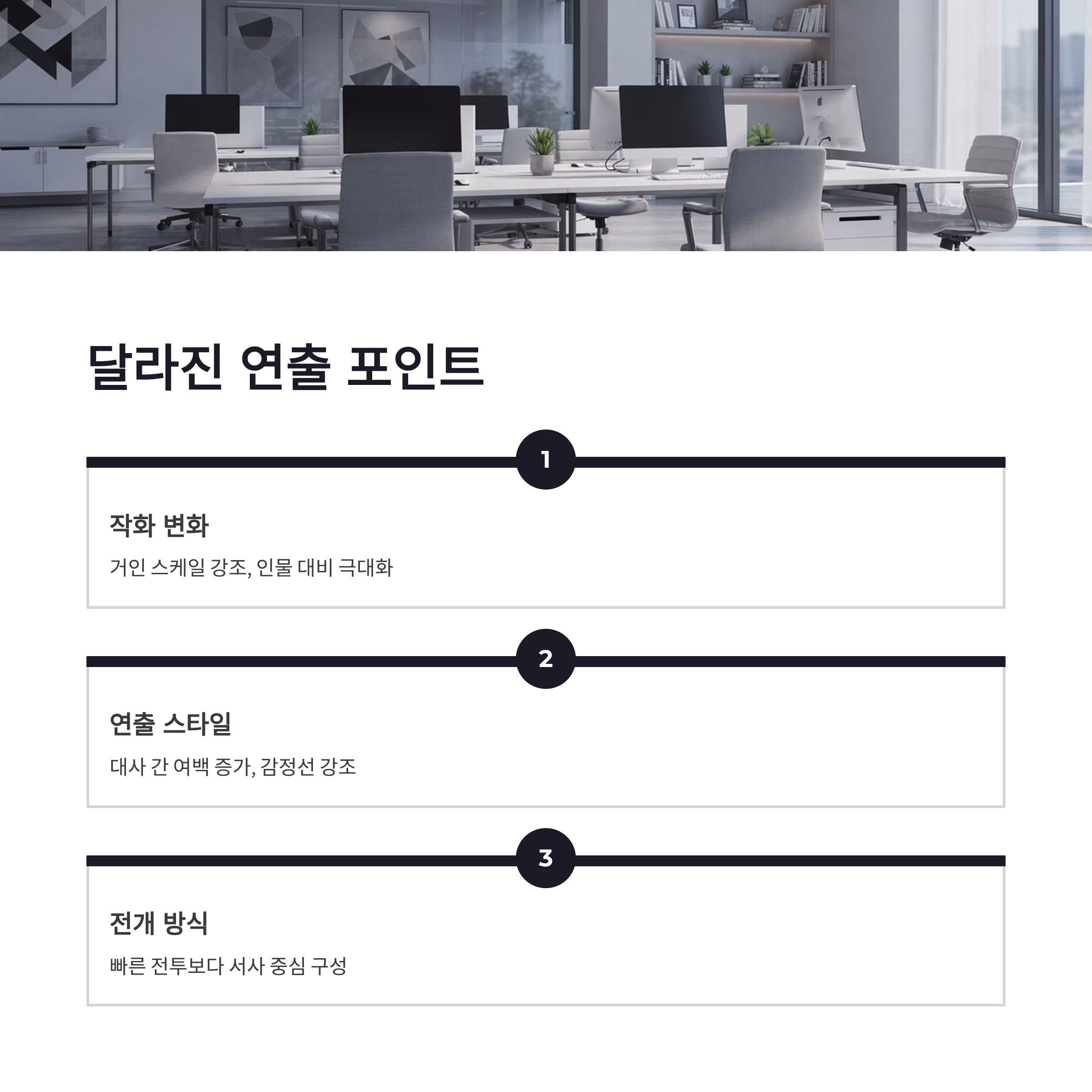 | 연출 | 대사 간 여백 증가, 감정선 강조 |