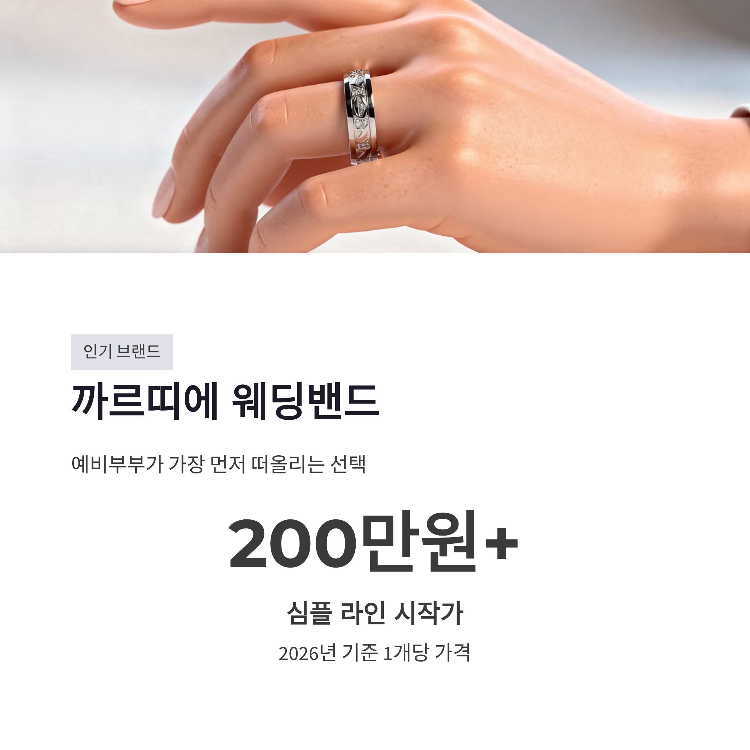 많은 예비부부가 웨딩밴드 하면 가장 먼저 떠올리는 브랜드가 까르띠에인 것 같아요. 디자인이 과하지 않고 상징성이 확실해서요. 제가 본 기준으로 2026년 현재 까르띠에 웨딩밴드는 심플 라인 기준 1개당 약 200만 원대 초중반부터 시작하더라구요. 다이아 유무, 폭에 따라 차이는 꽤 있었구요.