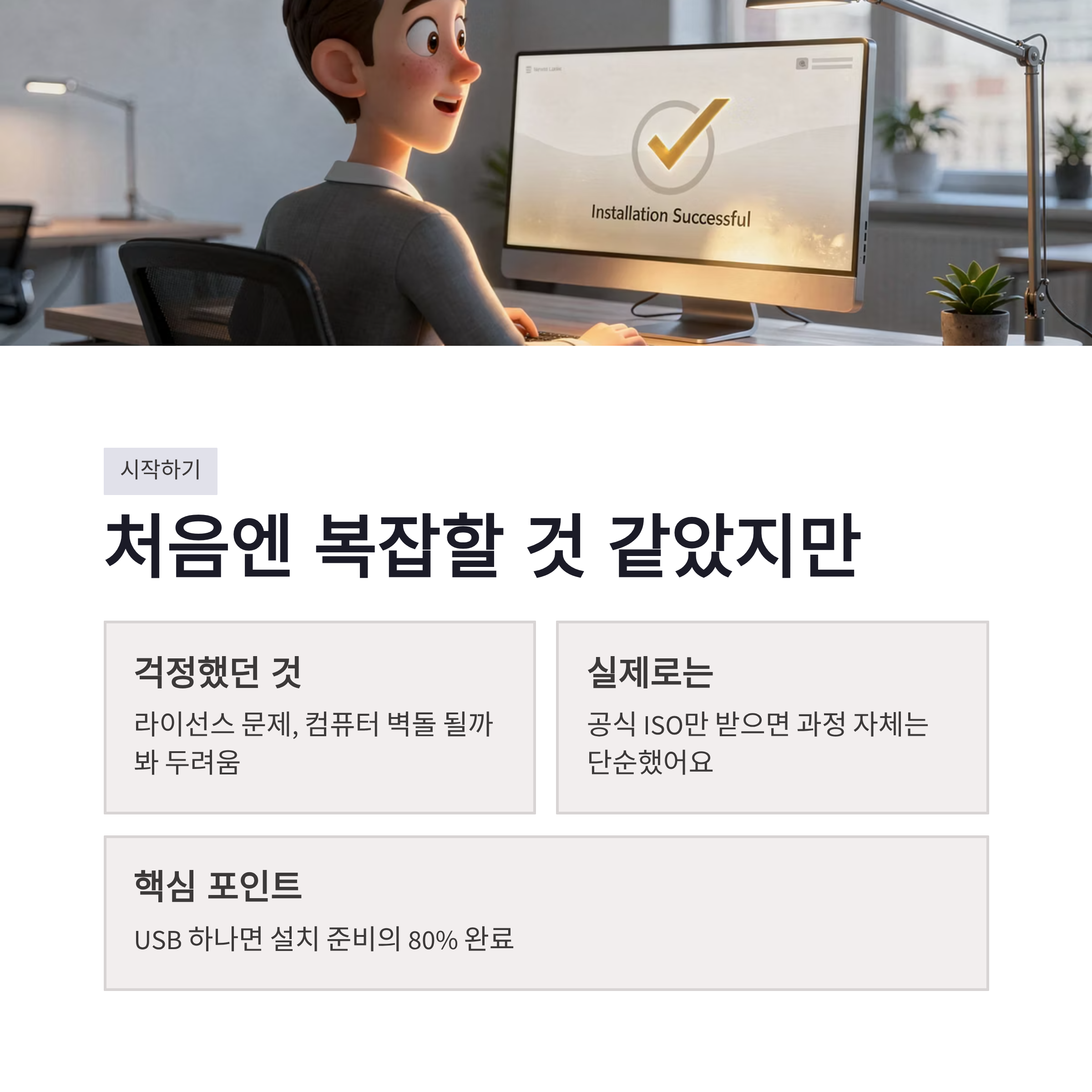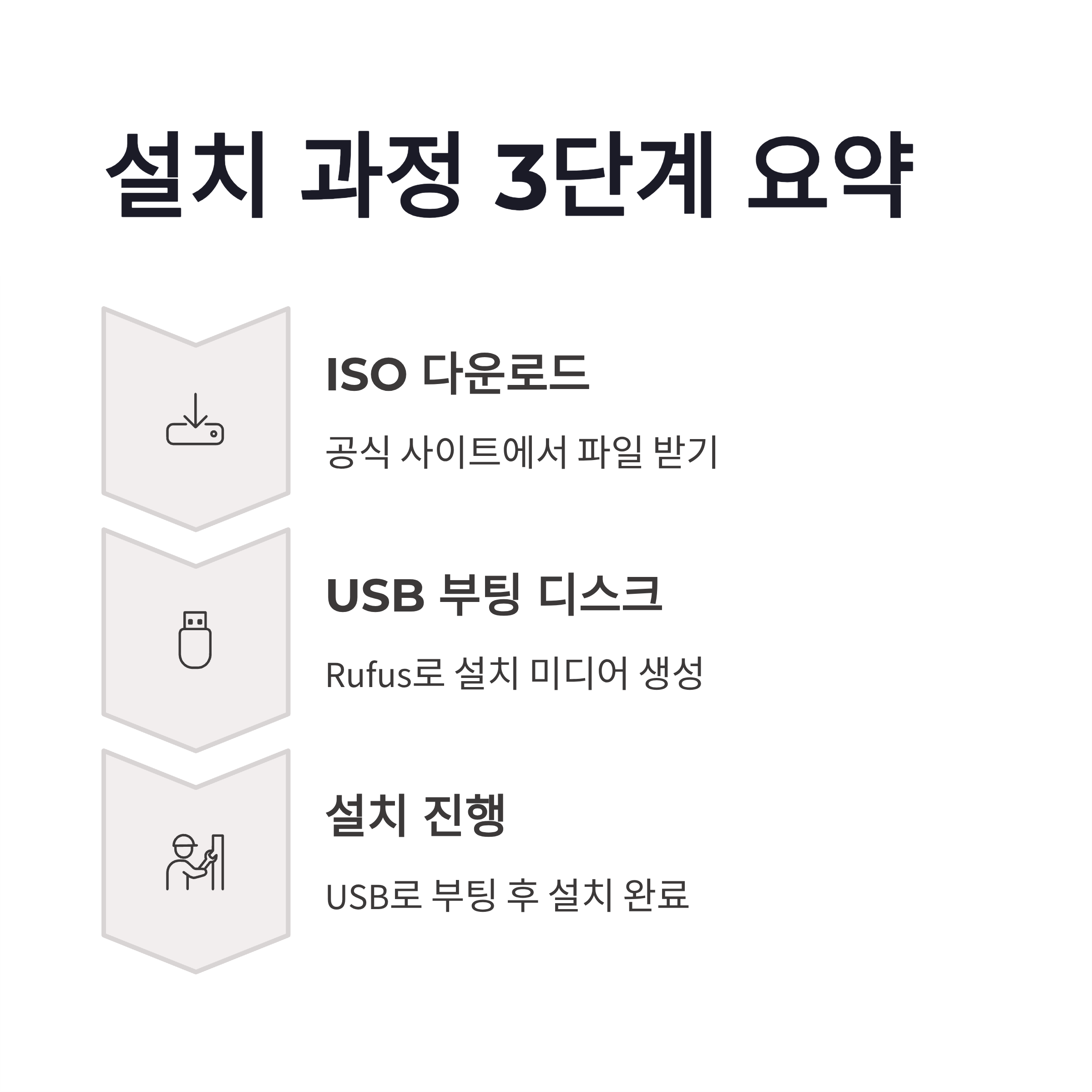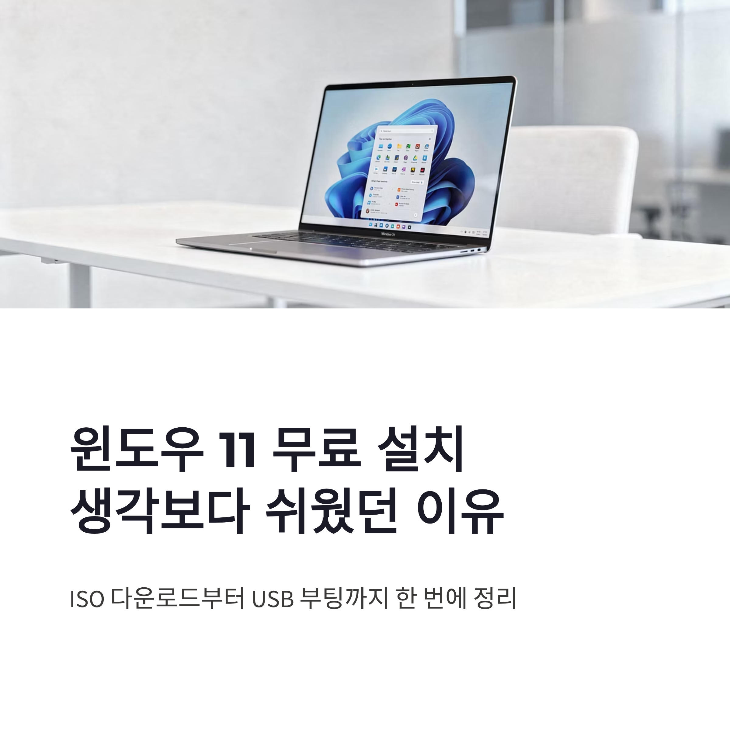 정리해보면 윈도우 11 무료 설치는 ISO 다운로드 → USB 부팅 디스크 생성 → 설치 이 세 단계만 기억하면 끝이에요.