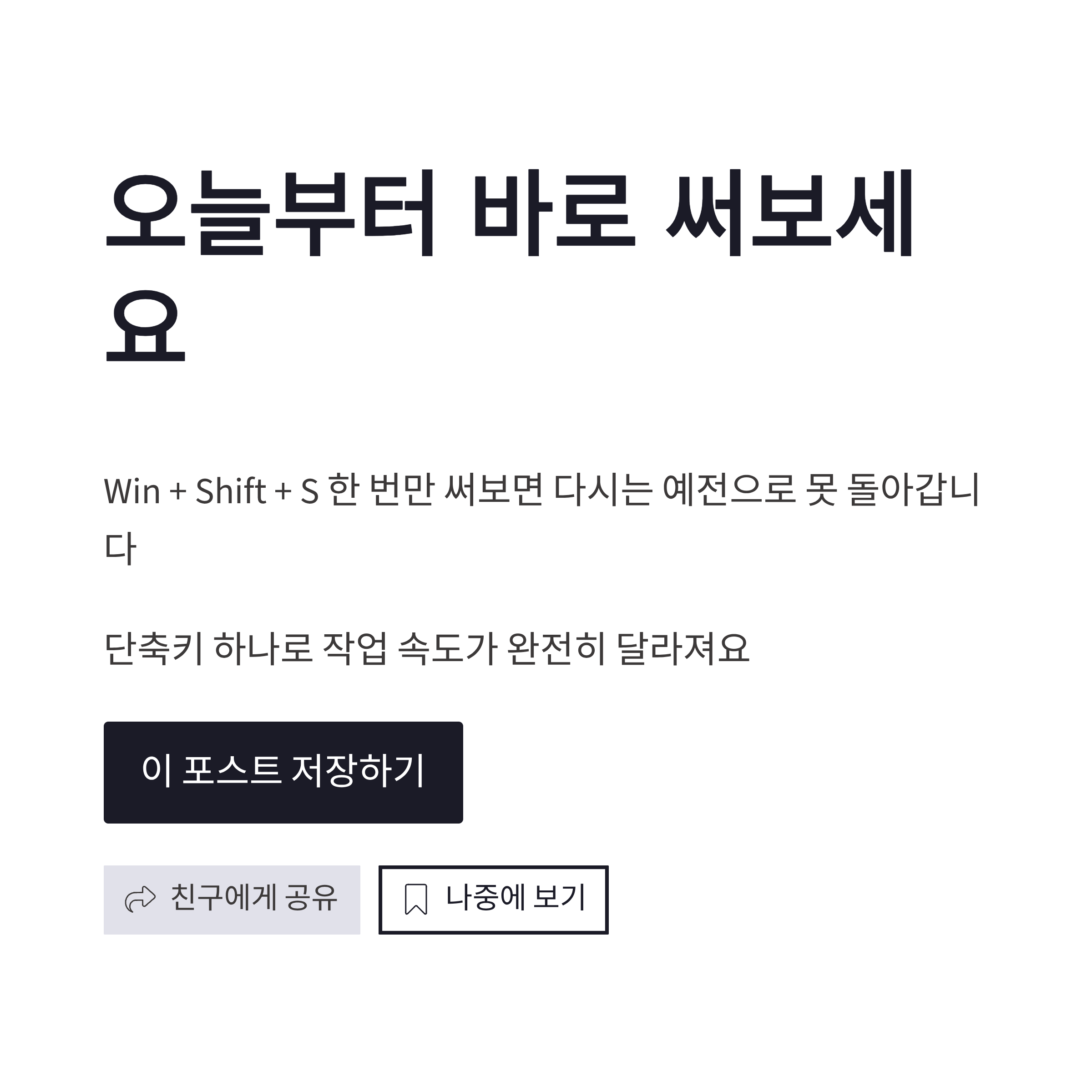 | Win + Shift + S | 영역/창 선택 | 클립보드 |