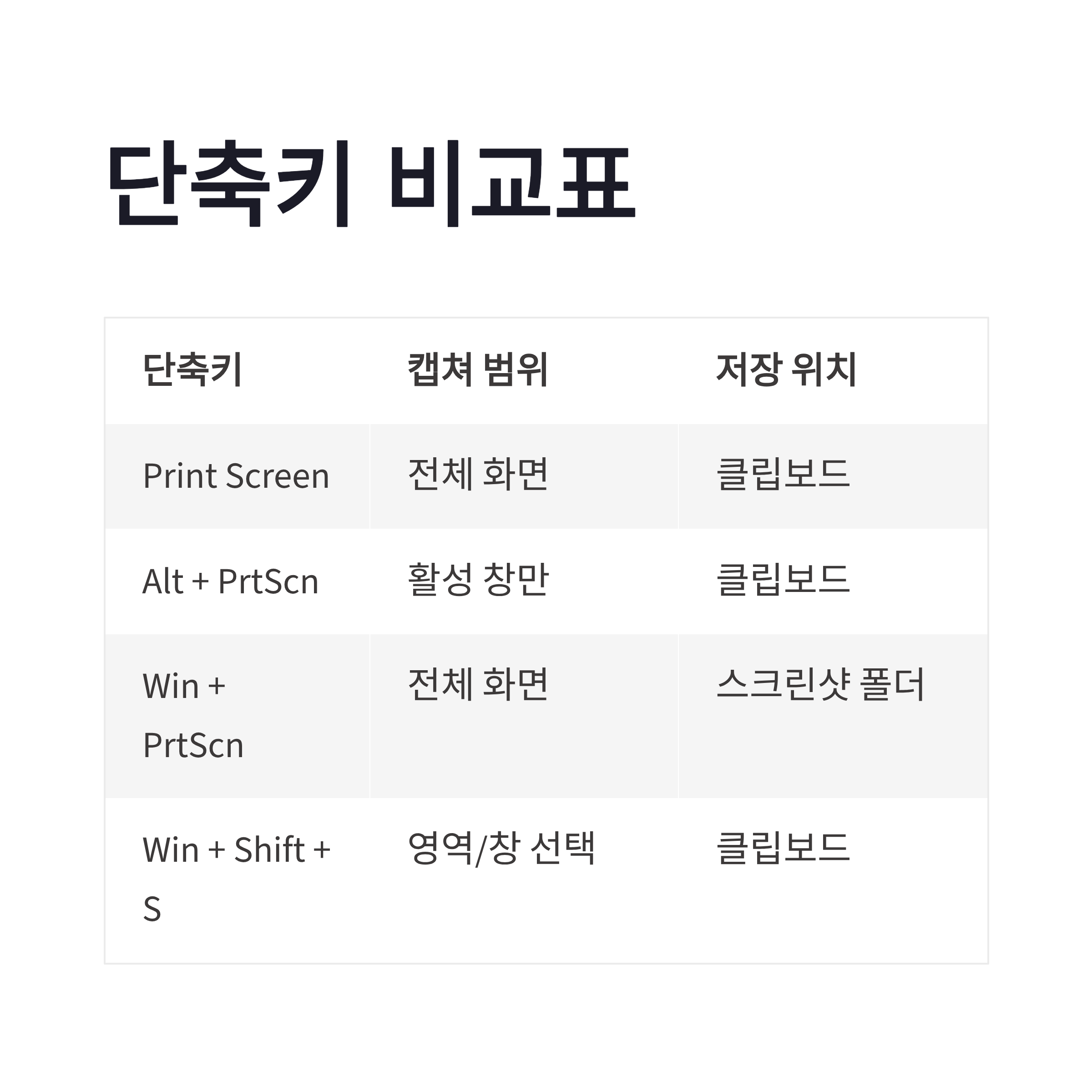 | 단축키 | 캡쳐 범위 | 저장 위치 |