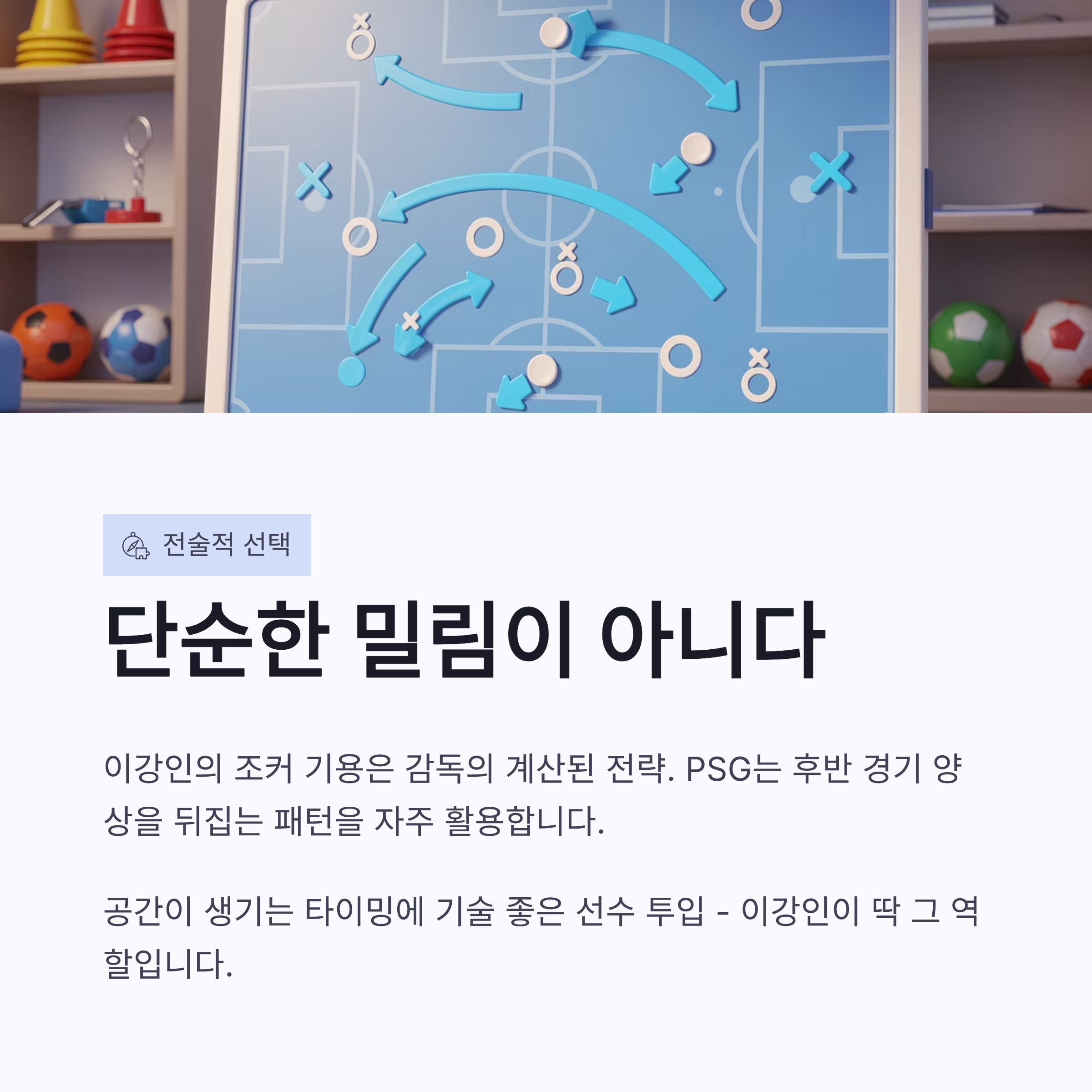 이걸 보면 이강인 PSG 조커는 그냥 벤치 멤버가 아니라, 흐름 바꾸는 카드라는 게 보입니다. 연관해서 “전술적 교체”, “게임 체인저”라는 말도 많이 붙더라구요.