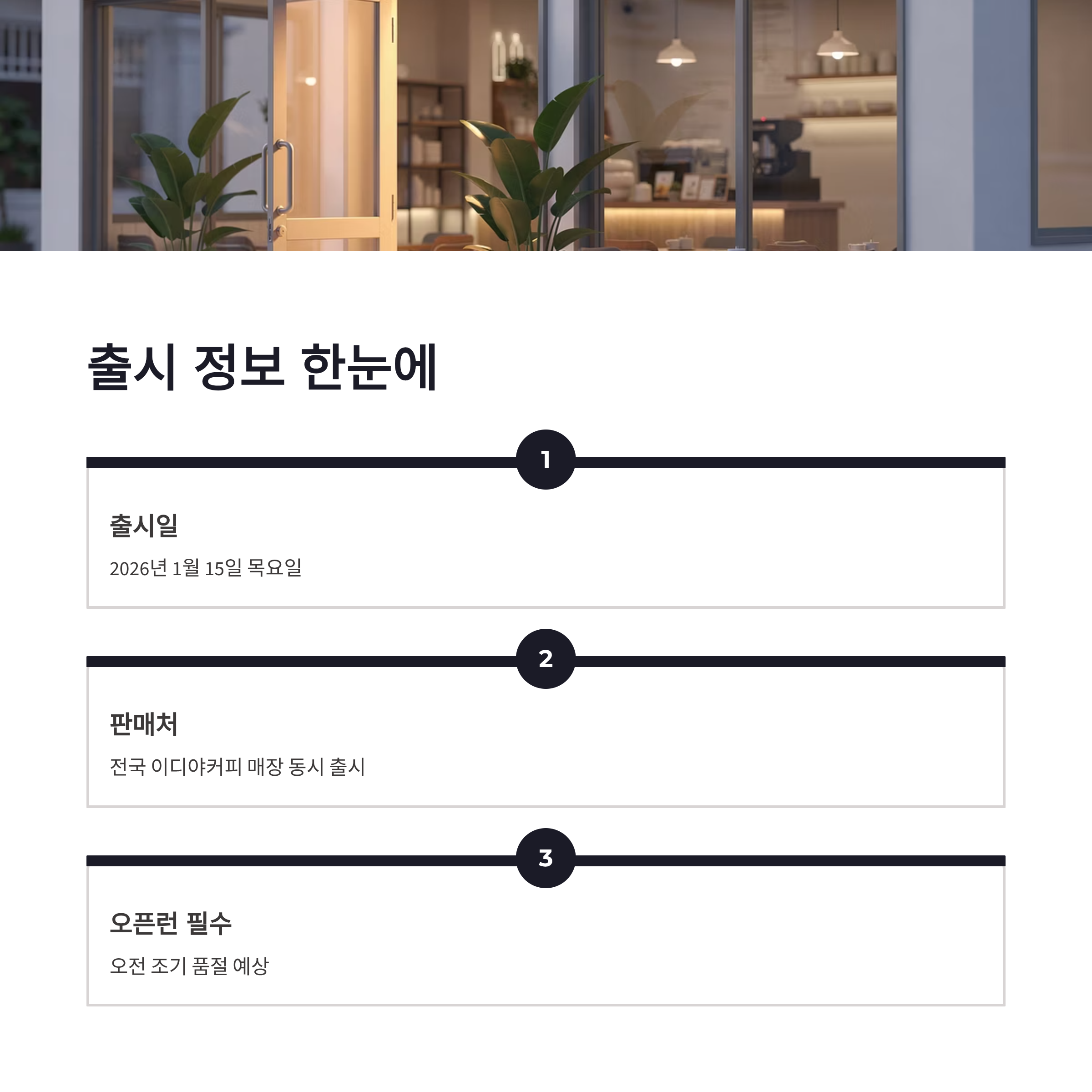 출시는 1월 15일(목), 전국 이디야커피 매장에서 동시에 시작됩니다. 이런 콜라보는 오픈런 국룰이쥬… 오전에 빠지는 매장도 많을 듯요.