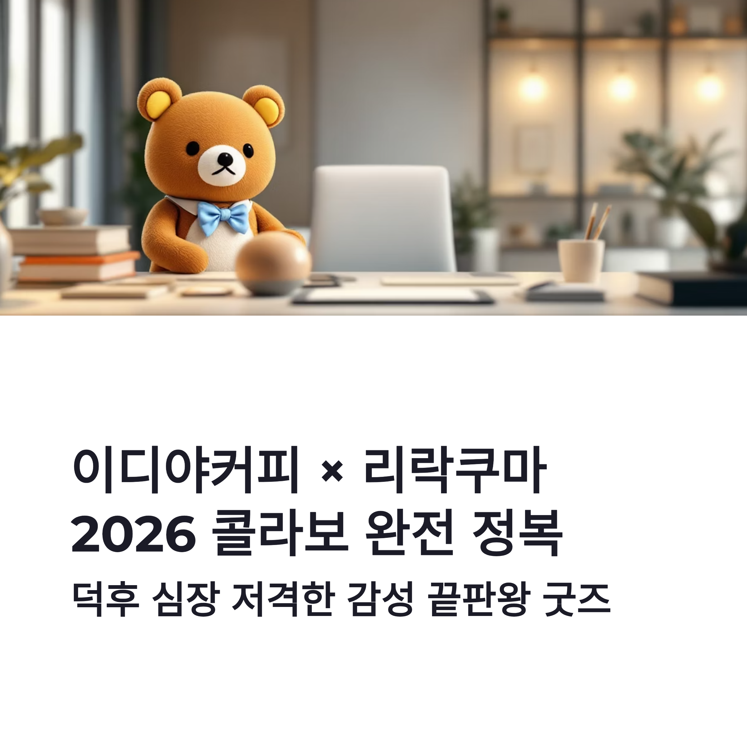 아니 진짜요… 이디야커피 리락쿠마 콜라보 소식 듣자마자 저 혼자 소리 질렀습니다ㅋㅋ 산리오, 짱구 때도 난리였는데 이번엔 감성 끝판왕 리락쿠마라니요. 2026년 새해부터 덕후 지갑 제대로 흔드는 느낌…ㅎ 이번 이디야커피 리락쿠마 콜라보는 귀여움도 귀여움인데 실사용 가능한 굿즈라서 더 반응이 큰 것 같더라구요. 저도 마그넷 사진 보자마자 “아 이건 모아야 한다” 싶었구요. 출시 전부터 커뮤 반응이 터지는 이유, 딱 이해됐습니다. 이디야커피 리락쿠마 콜라보는 그냥 굿즈가 아니라 소장용 감정템 느낌이에요.