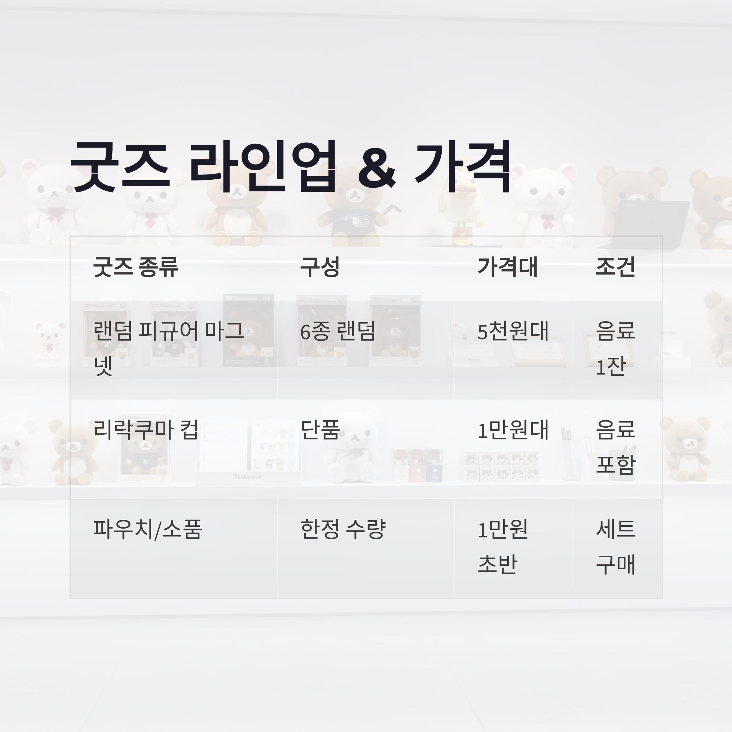 | 굿즈 종류 | 구성 | 가격대 | 구매 조건 |