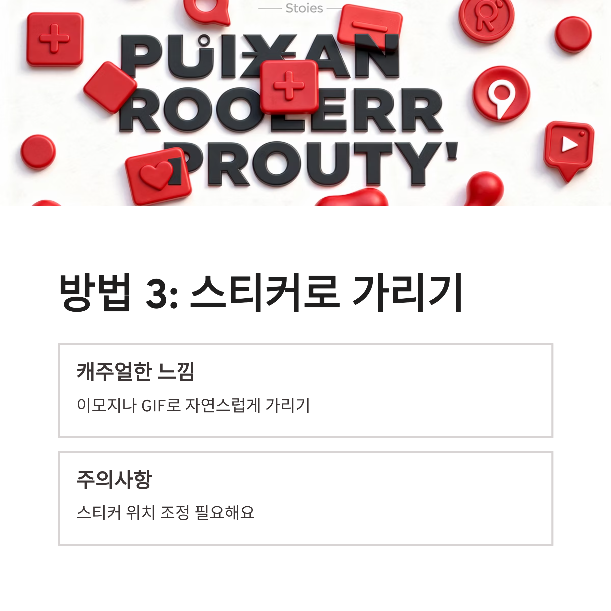 | 스티커로 가리기 | 쉬움 | 중간 | 캐주얼 스토리 |