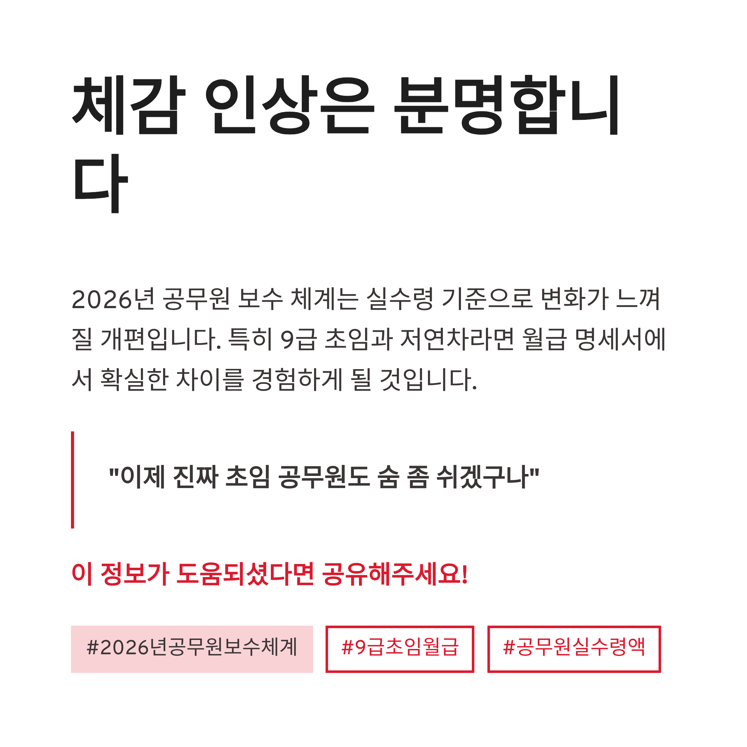 #2026년공무원보수체계 #공무원월급 #9급초임월급 #공무원실수령액 #공무원보수인상 #저연차공무원 #공무원급여표 #정액급식비 #초과근무수당 #육아기수당 #공무원처우개선 #공무원연봉 #공시생정보 #공무원현실 #공무원정책
