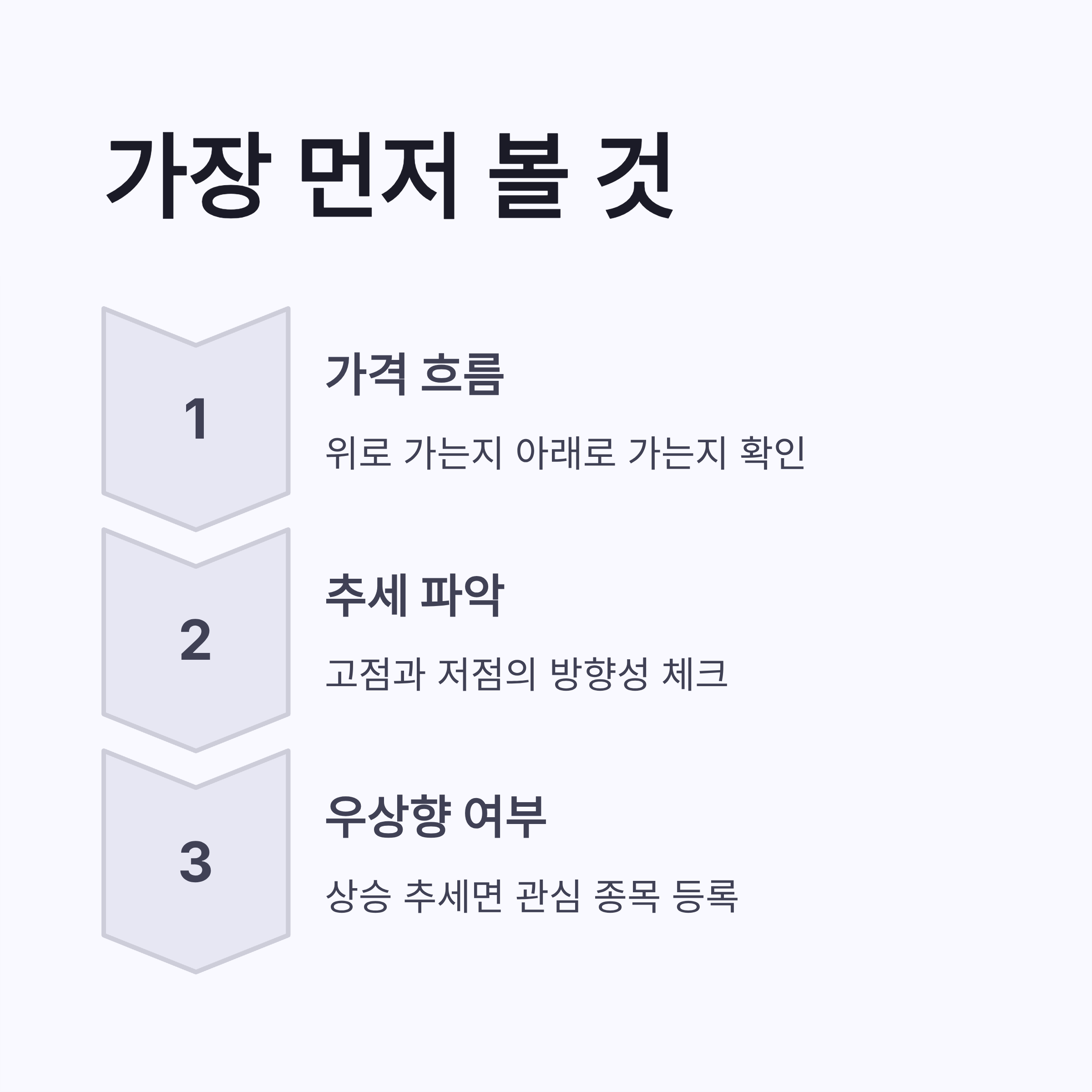 | 추세 | 고점·저점 방향 | 우상향이면 관심 |