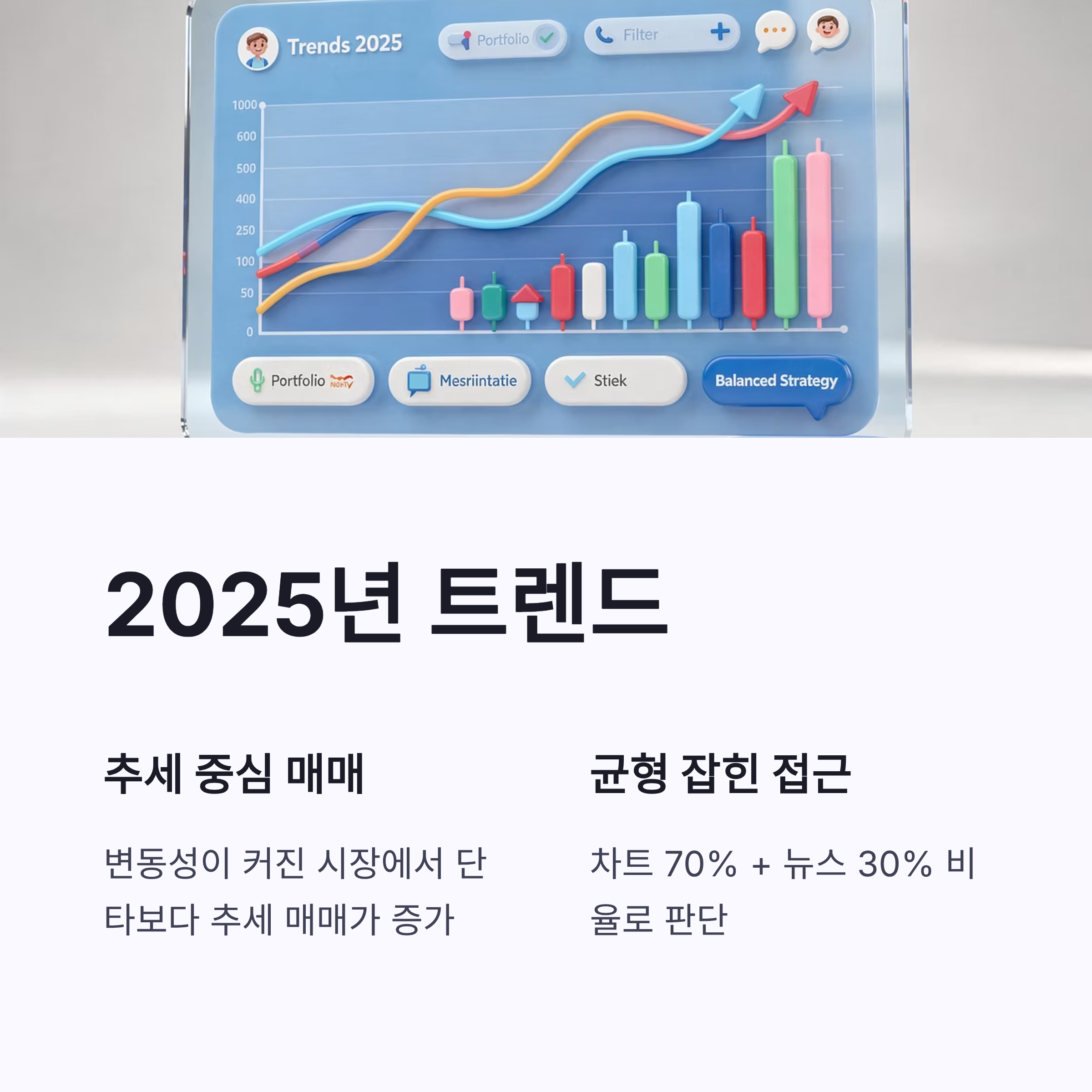 그래서 저는 항상 차트 70% + 뉴스 30% 정도로 봅니다. 이 균형이 생각보다 중요하더라구요.