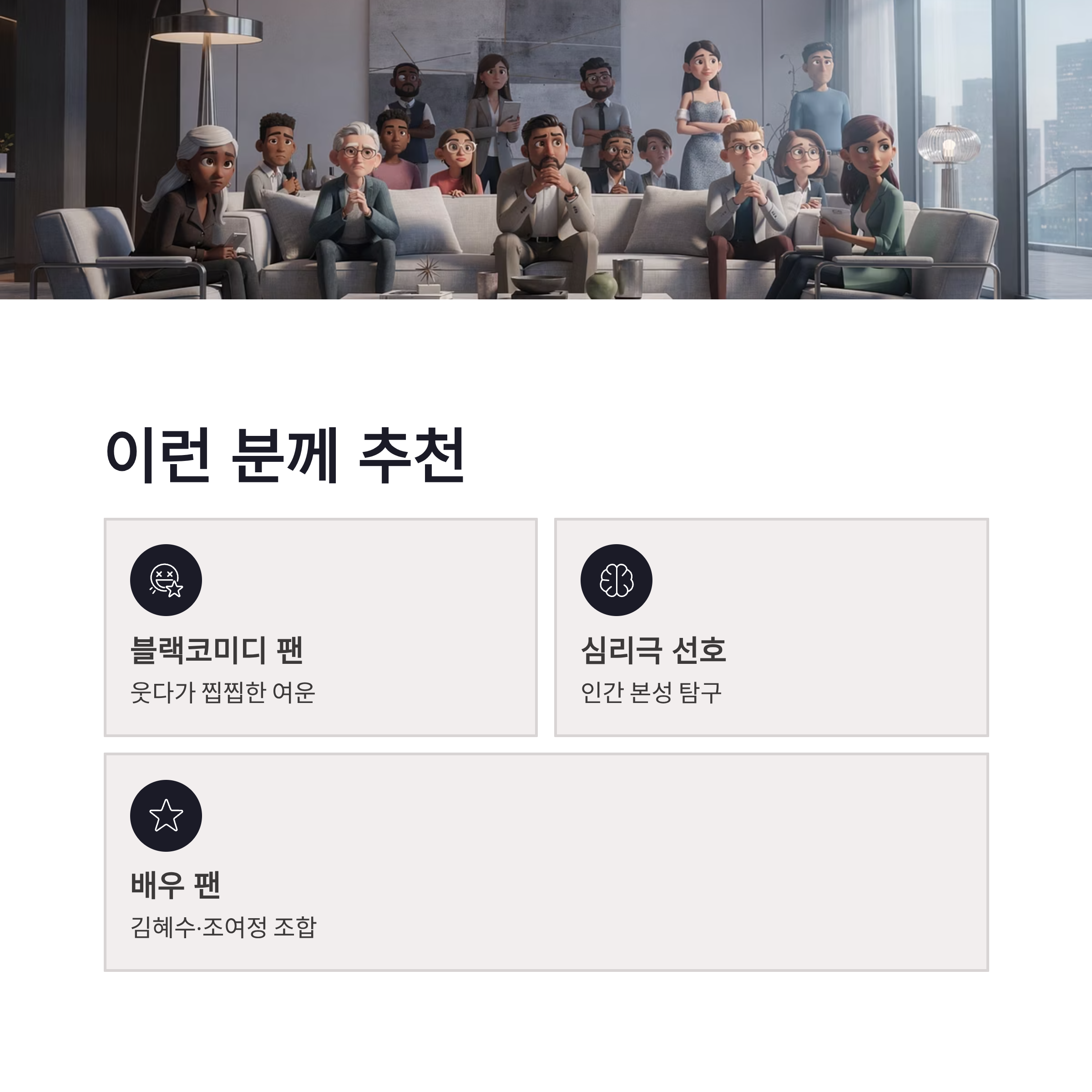 처음 제목 들었을 때 솔직히 좀 세더라구요. 근데 내용을 파고들수록 이게 단순한 불륜 이야기가 아니라는 게 느껴졌습니다. 지금 불륜이 문제가 아닙니다는 도입부만 보면 자극적인데, 막상 중심은 인간 욕망의 민낯을 비틀어 보여주는 블랙코미디 쪽에 가깝더라구요. 여기에 김혜수랑 조여정이 같이 나온다? 이 조합만으로도 이미 반은 성공한 느낌이었슴다. 두 배우 다 감정선 밀도 장난 아닌 스타일이라, 웃기면서도 불편한 장면들 꽤 나올 것 같더라구요. 개인적으로는 김혜수 특유의 냉소 섞인 대사톤이 이 장르랑 너무 잘 맞을 듯해서 기대 중입니다.