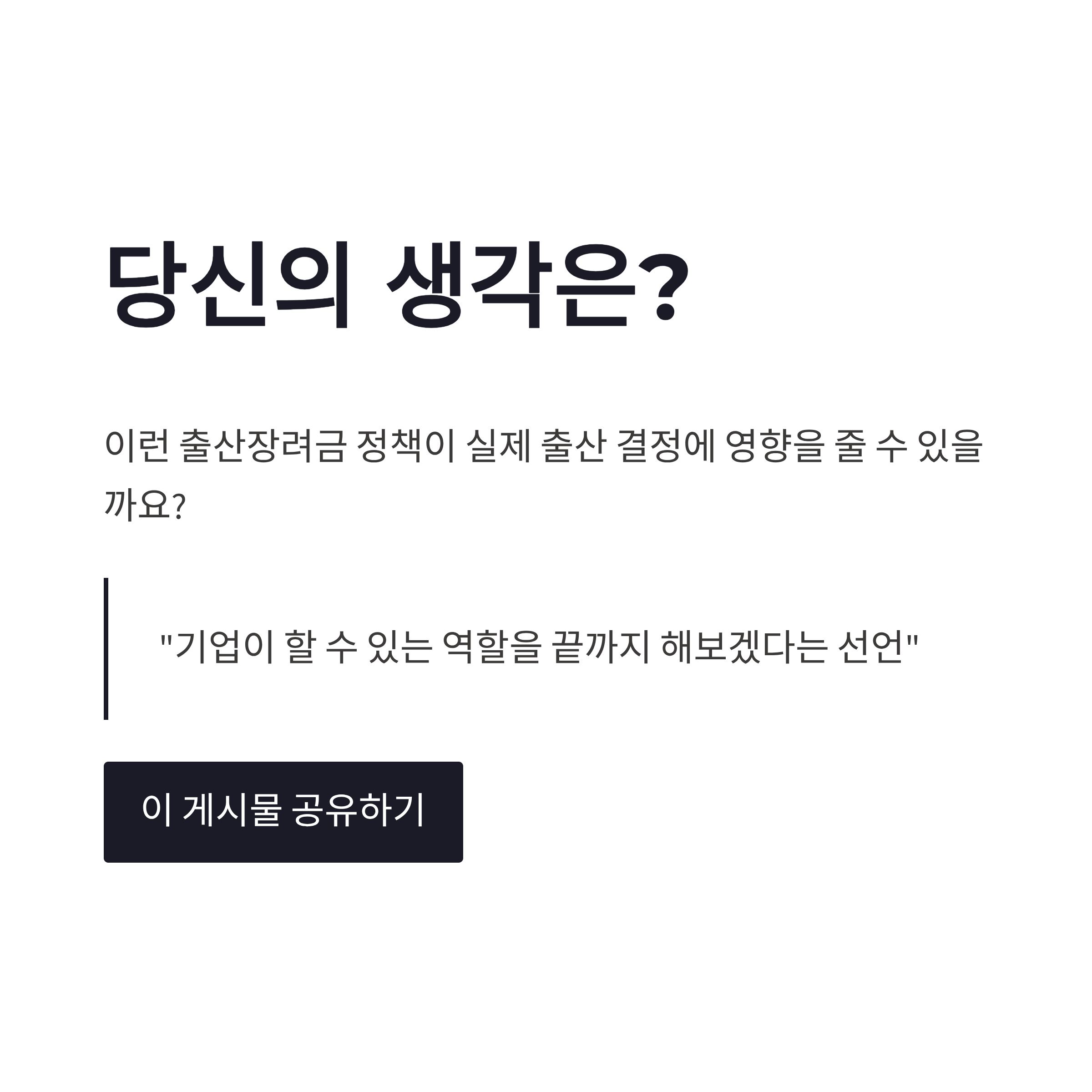 정리해보면 부영그룹 출산장려금은 금액보다도 메시지가 강했습니다. 저출생 해결을 “어쩔 수 없다”로 넘기지 않고, 기업이 할 수 있는 역할을 끝까지 해보겠다는 선언 같았거든요. 직원 입장에서도 이런 회사라면 오래 다니고 싶겠다는 생각이 들 것 같구요. 앞으로 이런 제도가 다른 기업들에도 조금씩 확산될 수 있을지, 괜히 지켜보게 됩니다. 여러분은 이런 출산장려금 정책, 실제로 출산 결정에 영향 줄 것 같다고 느끼시나요?