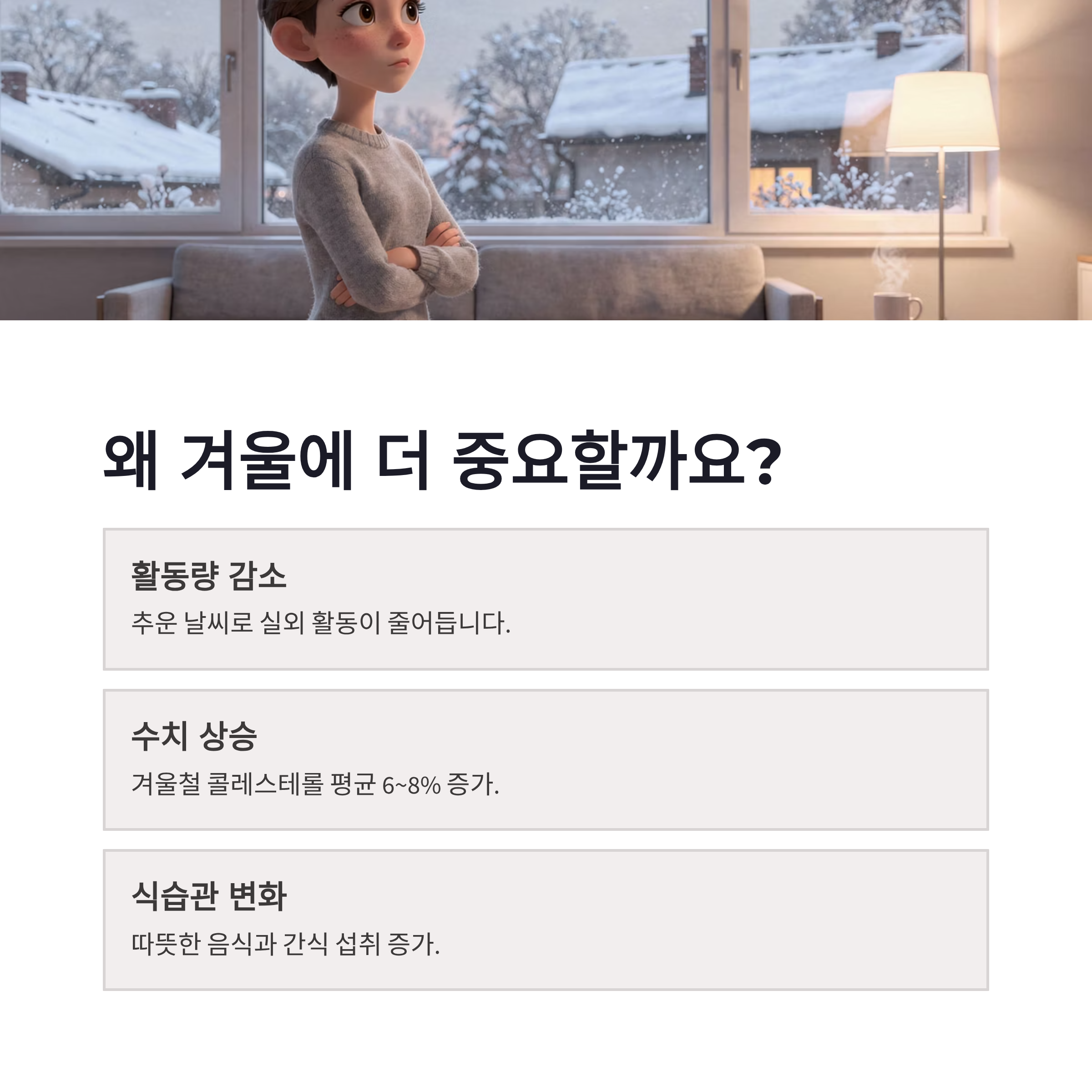 콜레스테롤 관리 겨울철 실내 건강 습관이 중요한 이유