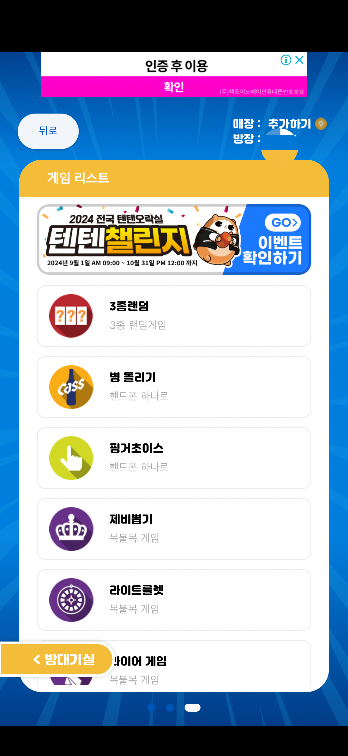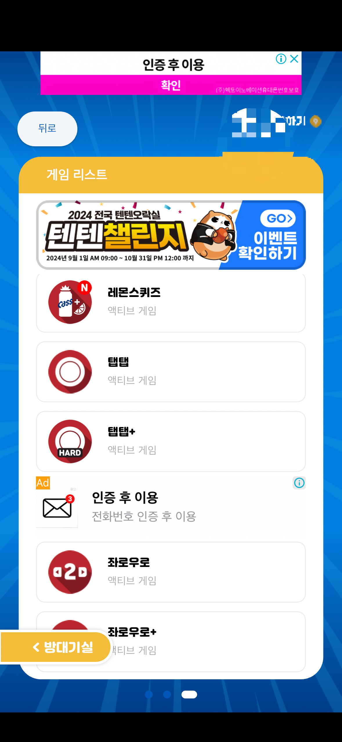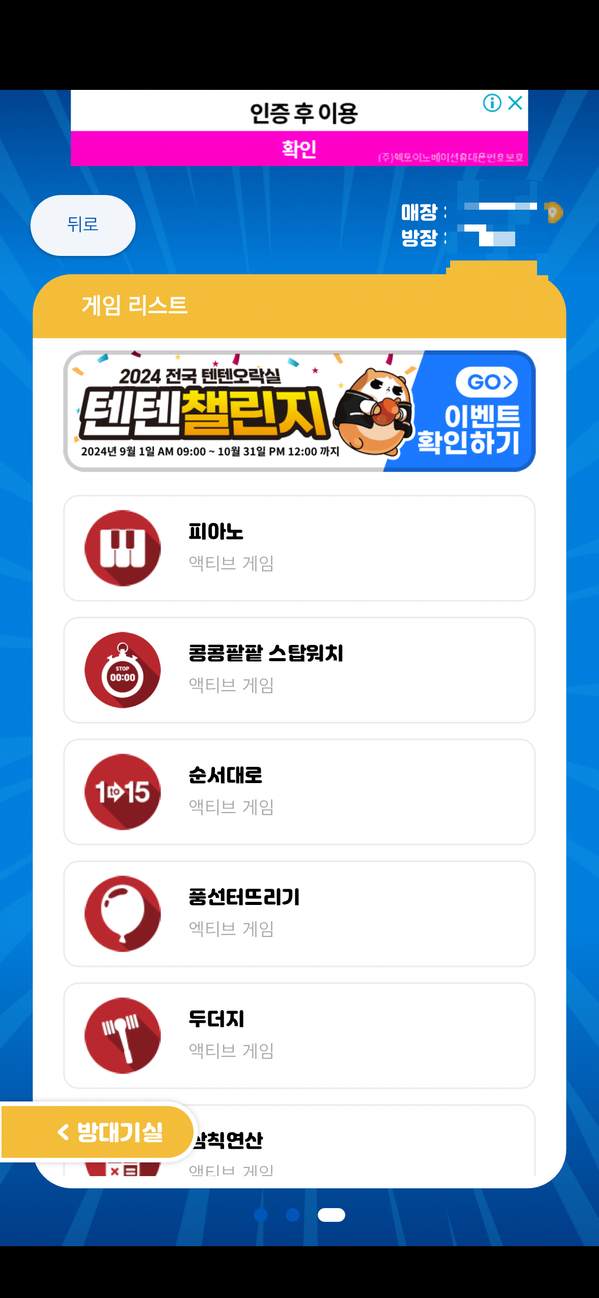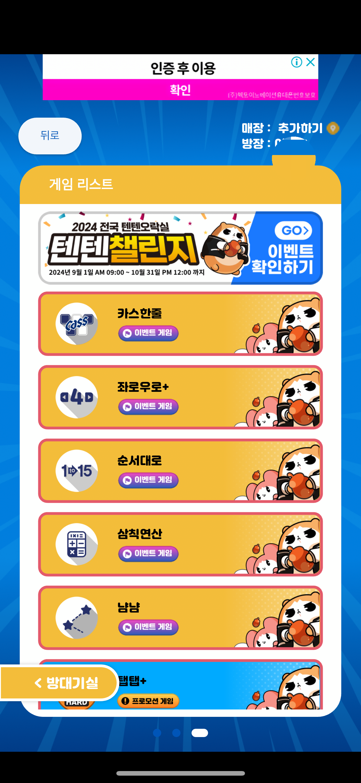 텐텐오락실 게임 진행 방법