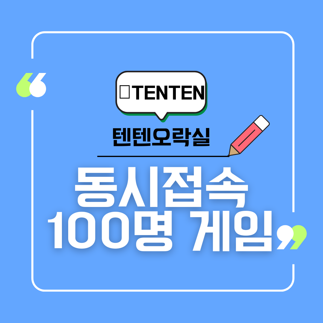 - 최대 100명 동시 접속: 텐텐오락실에서는 최대 100명이 동시에 접속해 같은 게임에 참여할 수 있습니다. 친구들과의 작은 모임부터, 대규모 행사나 회사의 팀 빌딩 활동까지 다양한 규모의 게임 진행이 가능합니다.