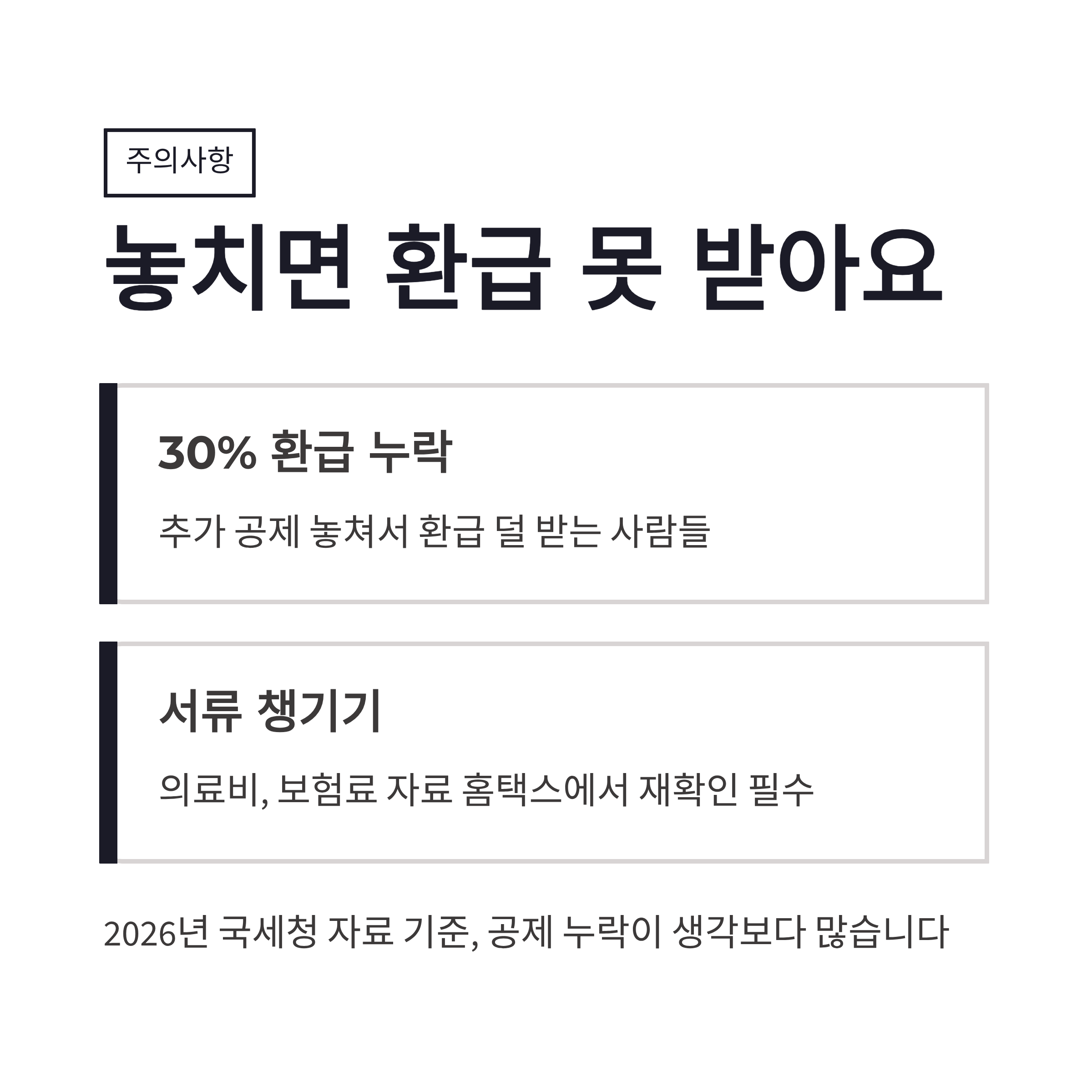2026년 국세청 자료 기준으로 근로소득자 환급 대상 중 약 30%가 추가 공제 누락으로 환급을 덜 받는다고 하더라구요. 생각보다 많쥬? 그래서 퇴사 후 연말정산은 “이미 끝났겠지” 하고 넘기면 손해일 수 있어요.