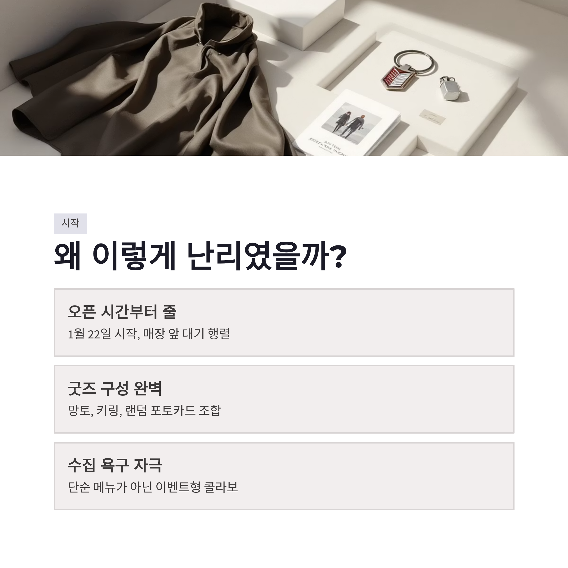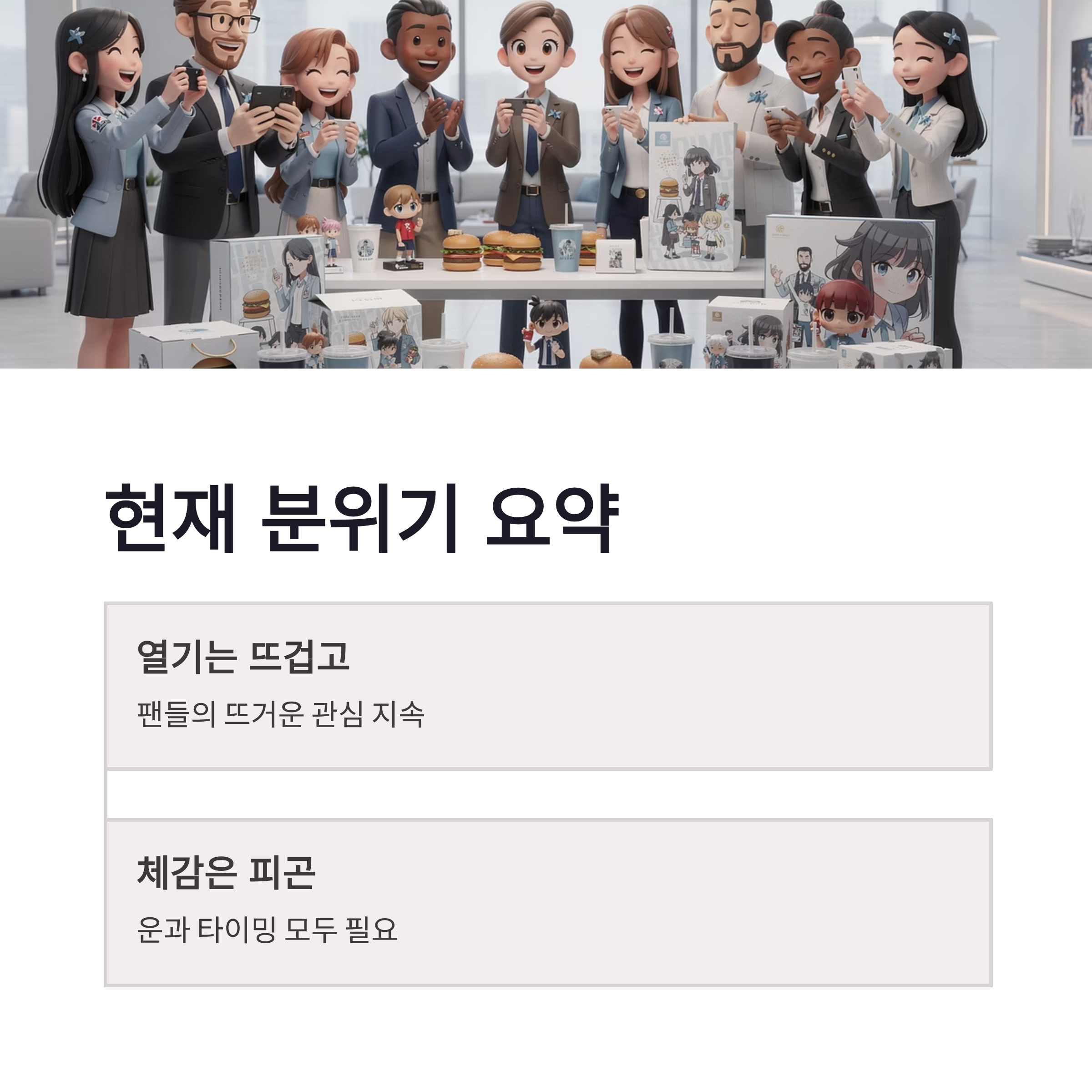| 오픈 직후 | 굿즈 전종 빠른 소진 | 출근 전 방문자 많음 |