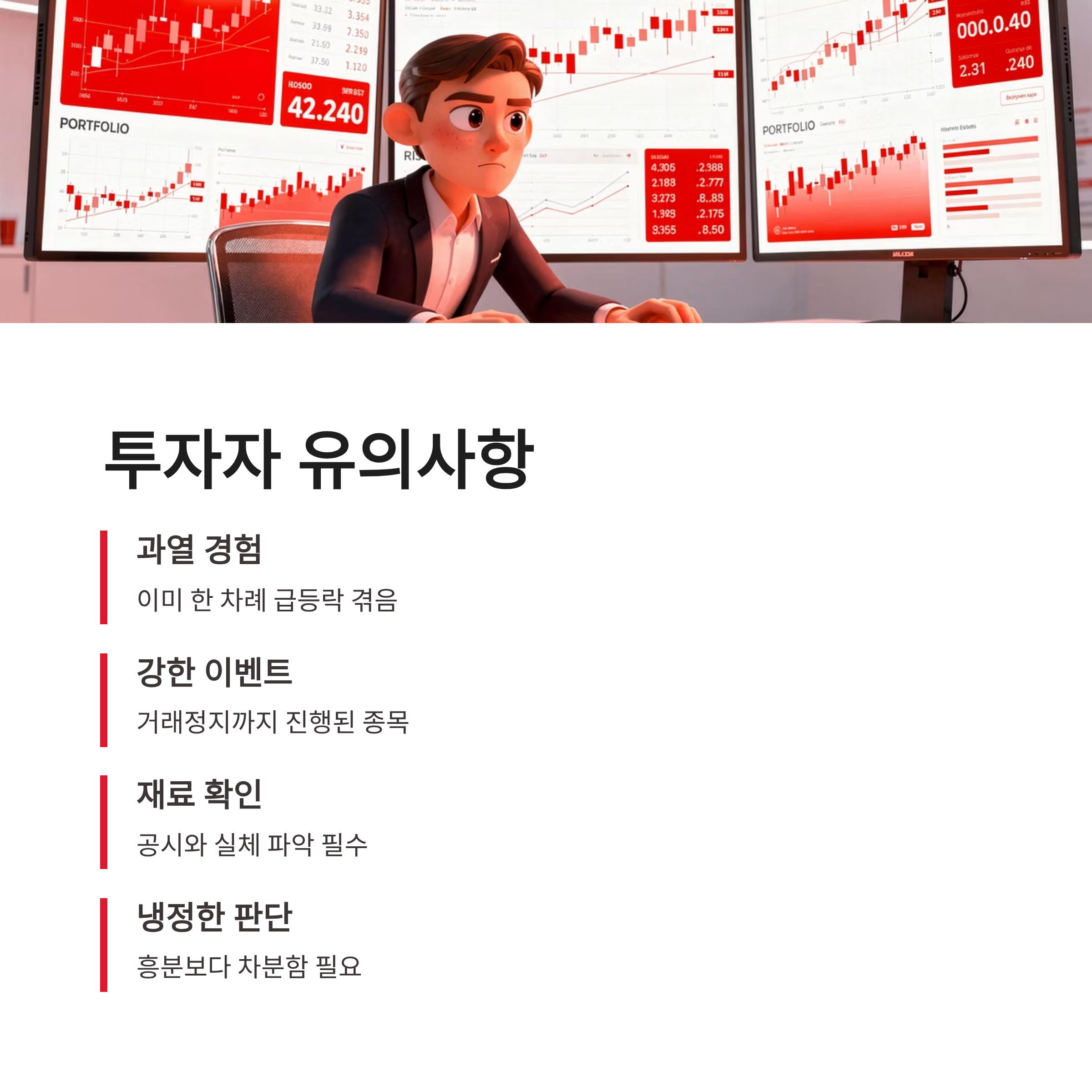 | 거래재개 | 방향성 불확실 | 급등락 반복 |