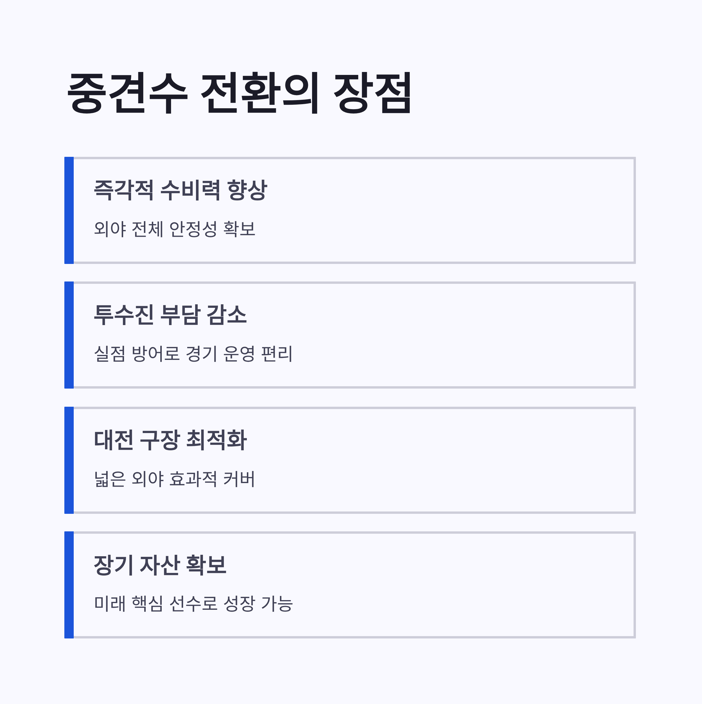 | 중견수 | 수비 중심 기용 | 넓은 수비 범위, 대전 구장 최적 |