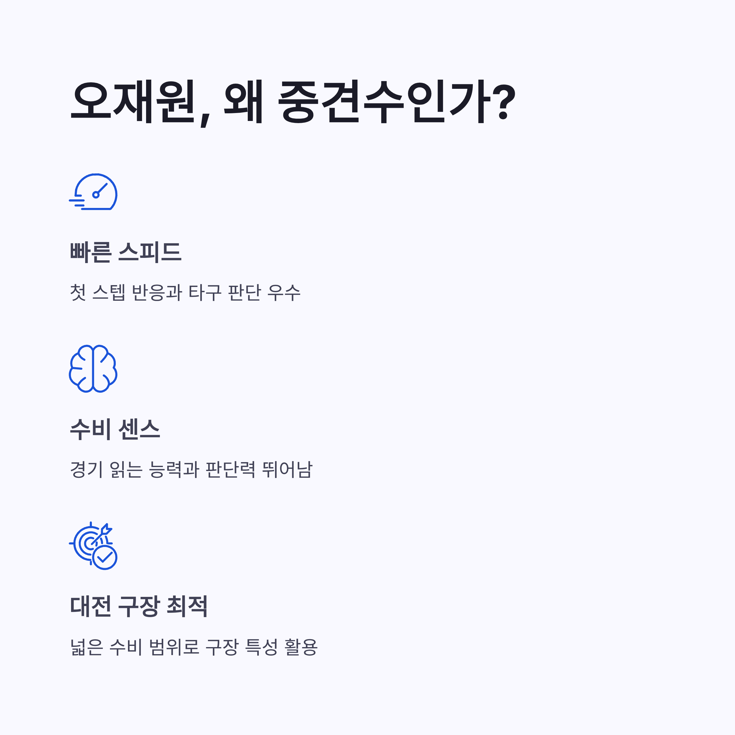 솔직히 말해서 2025 시즌 한화 외야진 재편의 핵심은 수비 범위입니다. 한화는 최근 몇 시즌 동안 외야 수비에서 잔실수가 많았고, 넓은 대전 구장을 커버할 자원이 필요했거든요. 이 지점에서 오재원 활용법이 딱 맞아떨어집니다. 오재원은 스피드, 첫 스텝 반응, 타구 판단이 꽤 좋은 편이라 평가받고 있구요. 특히 중견수는 단순히 발 빠르다고 되는 자리가 아니라, 수비 센스와 경기 읽는 능력이 중요한데 이 부분에서 가능성을 본 것 같아요. 개인적으로는 “아, 이건 테스트 해볼 만하다” 싶었네요.